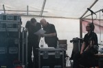 Was passierte, was passierte nicht. Was passte oder musste passend gemacht werden. Der Aufbau der Bühne und der Soundanlage war Knochenarbeit für die beteiligten Mitarbeiter. Wie in einem Getriebe griff ein Zahnrad ins andere, das ging präzise vorwärts. Nach einigen Stunden hieß es: Bühne fertig und frei zum Rocken. Der Test der Soundanlage: Gelungen. Wir kriegten während des gesamten Festivals einen grandiosen Sound mit allen Höhen und Tiefen auf die Ohren. Ich sah die harte Arbeit der Bühnenhelfer. Sie wuchteten, schleppten, schoben und transportierten leichtes, schweres und sehr schweres Instrumentarium und Zubehör. Das landete aus den Bandtransportern zur Zwischenlagerung erst mal in einem von der AWo zur Verfügung gestellten, riesigen Raum, in dem sich sonst 364 Tage im Jahr eine Werkstatt befindet. Von dort bis auf die Bühne waren das einige Meter, mit einem kurzen und knackigen Schlußanstieg. Und jeder Handgriff saß, alles geschah ohne Hektik und Schreierei.. Kurze Kommandos ertönten: wir brauchen da noch einen Mikrophon Halter. Und dort noch ein Stück Panzerband. Das hält jede Beziehung aus und fest. Ein Loblied oder Gedicht, das dem Panzerband die ihm zustehende Ehre erweist, ist noch nicht geschrieben. Ich bin kein Dichter, fange aber einfach mal damit an: Oh du graues Panzerband, fixierst Kabel auf dem Boden oder klebst an der Verstärkerwand……Edit ohne Einhaltung des deutschen Reimgesetzes: wirst oft rüde gezerrt oder auch gezogen, auf geradem Weg oder auch gebogen. Alles hältst du schön zusammen, oh du graues Panzerband….amen!