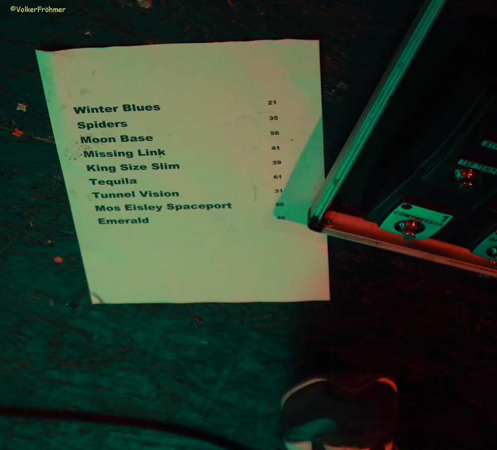 Die zweite Band des lauschigen Abends fabrizierte prächtig bunte Desertklänge. Atomic Vulture aus Belgien gaben bei ihrem ersten Auftritt in deutschen Landen alles. Ihre krawallig stürmischen Stonerattacken vertrieben den Winterblues. Jelle am Bass, Jens hinterm Schlagzeug und Pascal an der staubverkrusteten Gitarre prügelten uns die Gelenke in „dusty vibrations“, die Wüste lebte und bebte.