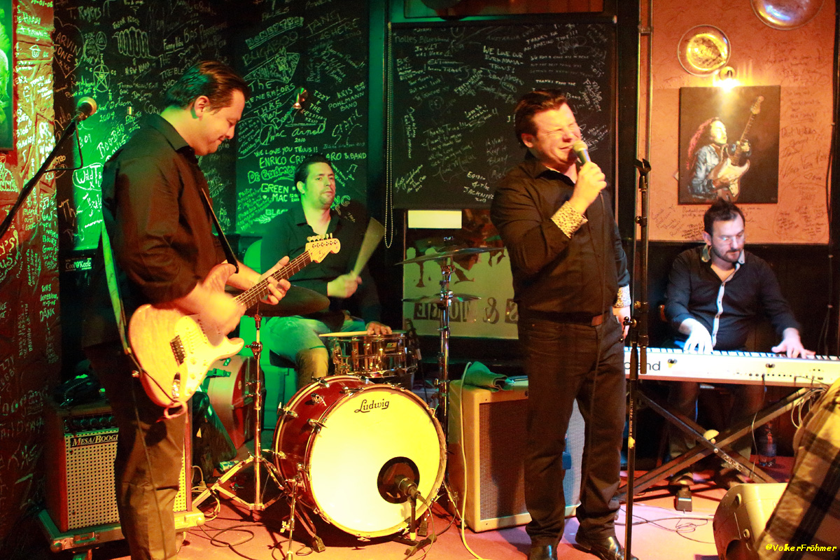 (vo) Um 22 Uhr 30 betraten vier Herren aus Ungarn die Bühne in einem meiner liebsten Blueswohnzimmer in Europa und begrüßten uns mit dem Gibson Creek Shuffle. Eine Bluesnummer, die sofort und ohne Umschweife die Schweißproduktionskonjunktur unter uns Zuhörern noch mehr ankurbelte. Draußen war es sowieso schon hitzig und drinnen herrschte bald eine ähnliche Atmosphäre wie in einem Bluesclub in Louisiana, der Chicagoer Southside oder in Budapest.