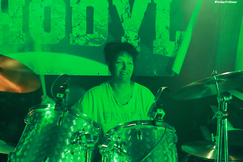 „Rainbow und God Machine“ standen als erste auf der Playliste, wobei mir die gegenseitigen Gitarrenrifflagen von Andre und Holli bei ersterem Stück besonders gefielen, Hollis Stimme sorgte für zusätzliche Stimmung unterm Scheunendach, Biene und Arno groovten den Grund unter die Füße.