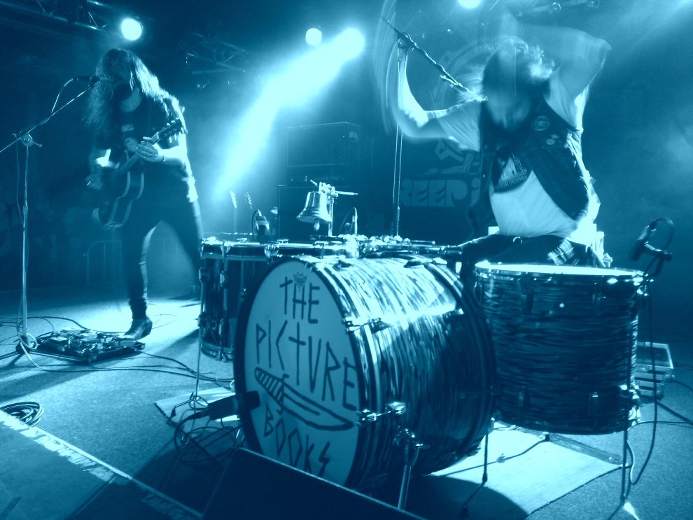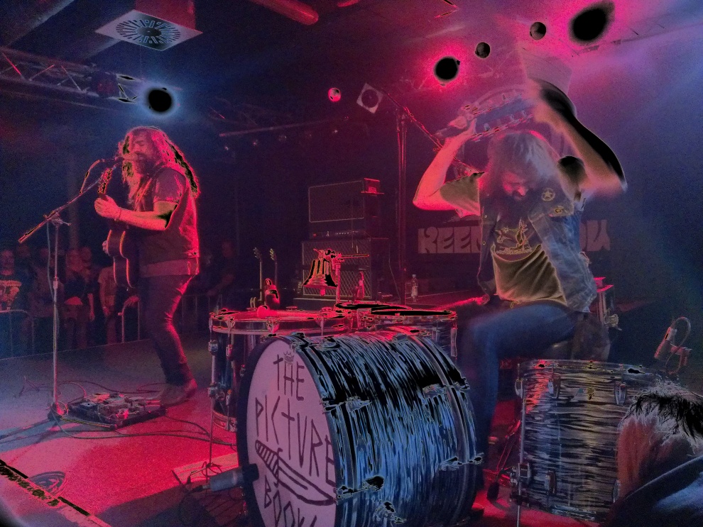 Und erster Fronteinsatz für Yvonne: THE PICTUREBOOKS – als Ersatz für die krankheitsbedingt abgesagten Samsara Blues Experiment gebuchte, zwei junge Mannen aus deutschen Gefilden, nur Gitarre und Schlagzeug, sehr minimalistisches, staubiges Southern-Rock-Gewitter, wahnsinnig mitreißend. Der Trommler zeigte den wohl größten Körpereinsatz des Festivals, drosch heftigst die Felle, bis sogar die Füße einer Trommel nachgaben und das Ding nur dank Hilfe einer flinken, helfenden Hand aus der ersten Reihe stehen blieb. Das Publikum war begeistert, tobte sich aus und feierte die zwei Herren anständig. Wieder einmal eine Festival-Neuentdeckung, und das neue Vinyl der Band stellte sich beim Hören tags darauf als wunderbar dauerschleifentauglich heraus.