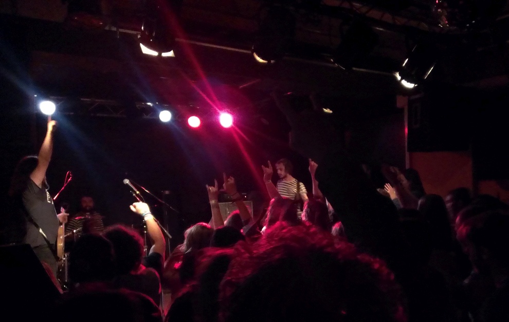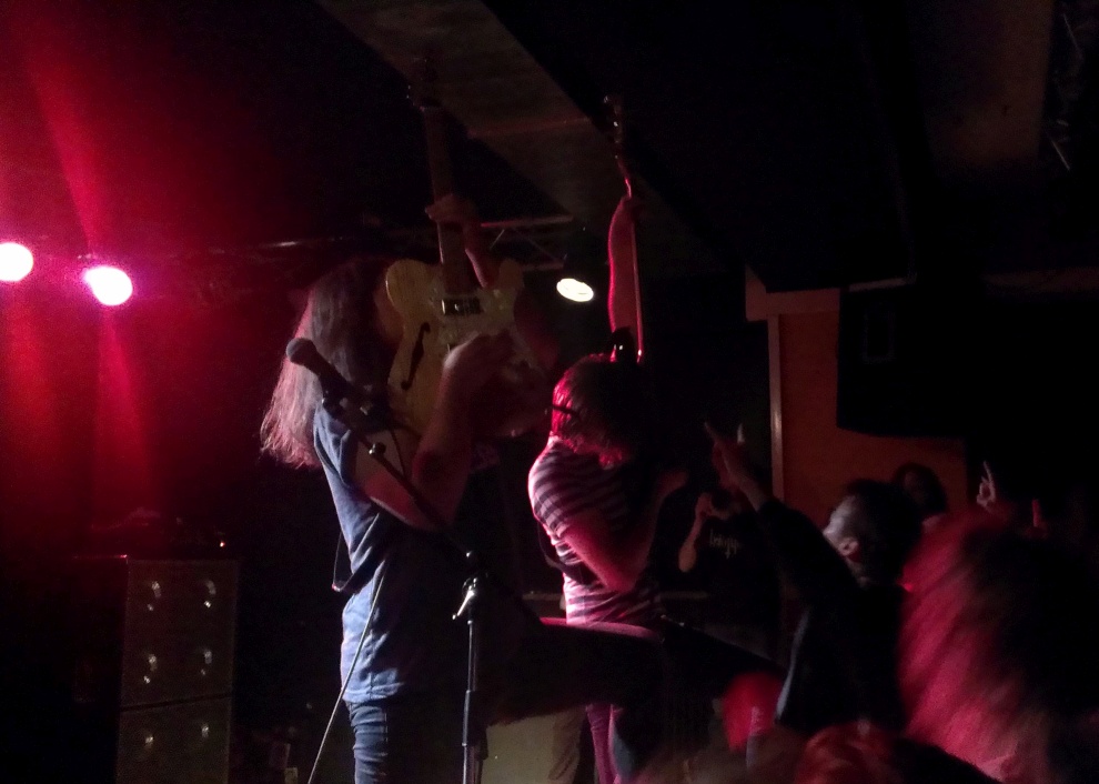 Kollegin Yvonne tauschte die Schweiz gegen die Ukraine und zog vor, sich dem ganz wilden Treiben bei STONED JESUS hinzugeben, die auf dem Festival ihr fünfjähriges Bühnenjubiläum in bekannt frenetischer Partylaune so richtig gediegen feierten. Das Trio enttäuscht eigentlich auch nie, junge Kerls mit ordentlich Pfeffer im Allerwertesten, dazu auch noch talentiert; solche Hits wie Electric Mistress oder I’m The Mountain können einem ja schon mal über Stunden im Ohr kleben bleiben. So war denn die Halle auch proppenvoll, vor der Bühne war es teils „gefährlich“, nur zu schnell kollidieren da mal Schädel im extatischen Geschüttel. Was eine Party! Alles inklusive, Gelegenheit für Stagediver und Crowdsurfer, ihrem Kontaktbedürfnis nachzukommen, heftigste Tanzerei, fliegende Haare ohne Ende, und zum krönenden Abschluß natürlich auch der Spezialeinsatz von Frontmann Igor, der sich rücklinks vom Publikum auf Händen tragen ließ, ohne dabei auch nur im Mindesten von der Gitarre abzulassen. Für mich ein Bomben-Abschluß und neuerliche Bekräftigung, die Jungs bei nächster Gelegenheit wieder feiern zu gehen. Danach war nur noch soziale Interaktion mit Freunden, alten und neuen Bekannten sowie Flüssigkeitszufuhr möglich, die Sättigungsgrenze des Tages erreicht. Danke an alle, die dieses tolle Festival möglich machen! Nächstes Jahr wieder…