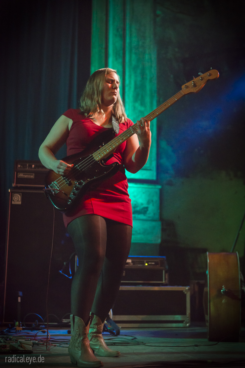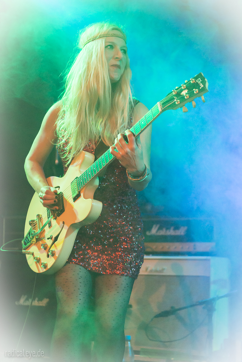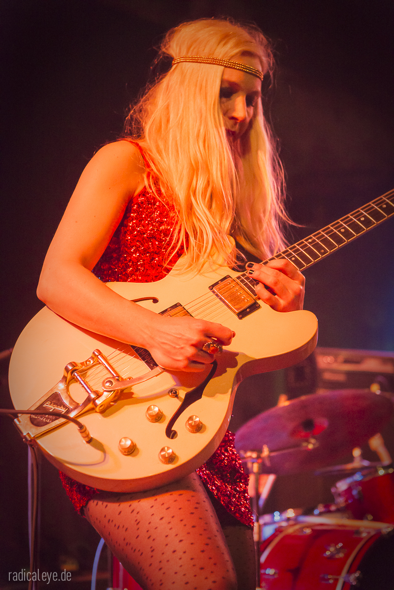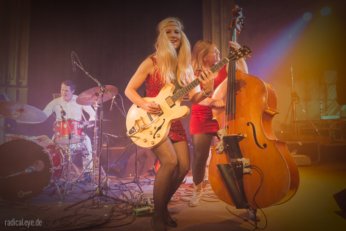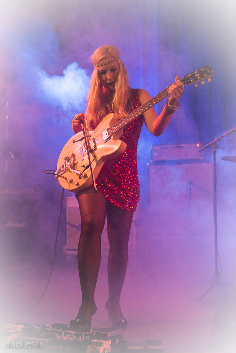 In Gedanken begebe ich mich auf eine Zeitreise in die Gemäuer des Union Theaters, doch schon wenig später betritt das mir bis dato unbekannte HEDVIG MOLLESTAD TRIO die Bühne, um ihr drittes Album „Enfant Terrible“ live zu präsentieren. Die Gitarristin Hedvig Mollestad, Bassistin Ellen Brekken und der Schlagzeuger Ivar Bjørnstad (Cakewalk) überraschen mich von der ersten Minute mit einem äußerst abwechslungsreichen Set, der zwischen Psychedelic, Jazz, Punk und Progressive-Rock pendelt, ohne dabei ins zu Komplexe abzudriften. Der Sound bleibt eingängig, mitreißend und intensiv. Das Trio präsentiert sich als feste Einheit, die ihre Musik mit Leidenschaft und Herzblut präsentiert. In Norwegen inzwischen überaus erfolgreich, sollte man die drei auch außerhalb der nordischen Landesgrenzen weiter im musikalischen Fokus behalten – ich bin inzwischen überaus fasziniert von dieser Band.
