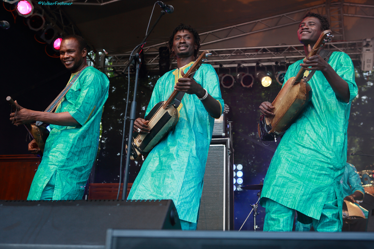 Vier Ngonis, darunter ein Bassngoni, zwei großartige Stimmen (das Ehepaar Kouyate) und zweimal perfekte Percussion verstanden es vorzüglich , uns im Münsterland in die Ursprünge des Bluesgenres zu verfrachten. Traditionelle Songs, neu arrangiert, aus der Region um Segou, der Heimat von Bassekou. Beeindruckend! Nicht minder beeindruckend die B.B. King Hommage von Bassekou.