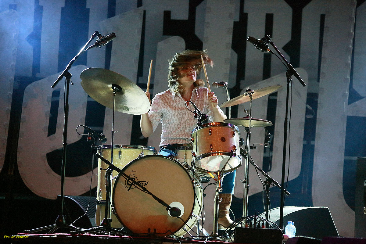 Zum Abschluß des vorzüglichen Festivals geben uns die mittlerweile ziemlich durchgestarteten Classic Rocker DeWolff den Rest vor dem Heimweg. Die drei Niederländer, Robin Piso an der Hammond, Backgroundgesang und die Gebrüder Luka (Schlagzeug) und Pablo van de Poel (Gesang und Gitarren) sind mit ihrem Sound aus bluesigen und psychedelischen Elementen, die mit Prog und Stoner angereichert werden, in einer eigenen Liga gelandet. Vor fast genau fünf Jahren sah ich die Band zum ersten Mal im Steinbruch in Duisburg, vor der beschämenden Zahl von ca. 15 Rockliebhabern. Schon damals fiel