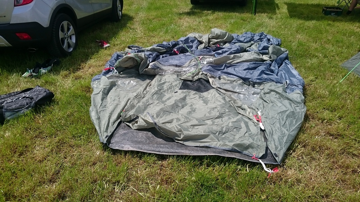 Vor das Feiern und Genießen hat Mutti Natur den Zeltaufbau gestellt, was man auch in Anbetracht der zu erwartenden Wetterlage mit Sorgfalt (und vor dem ersten Allohol) erledigen sollte.