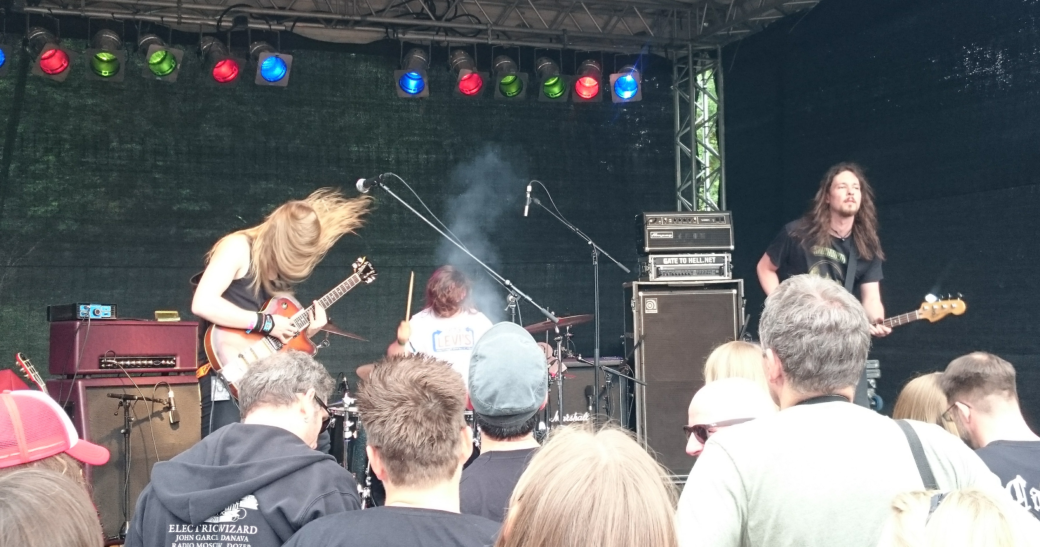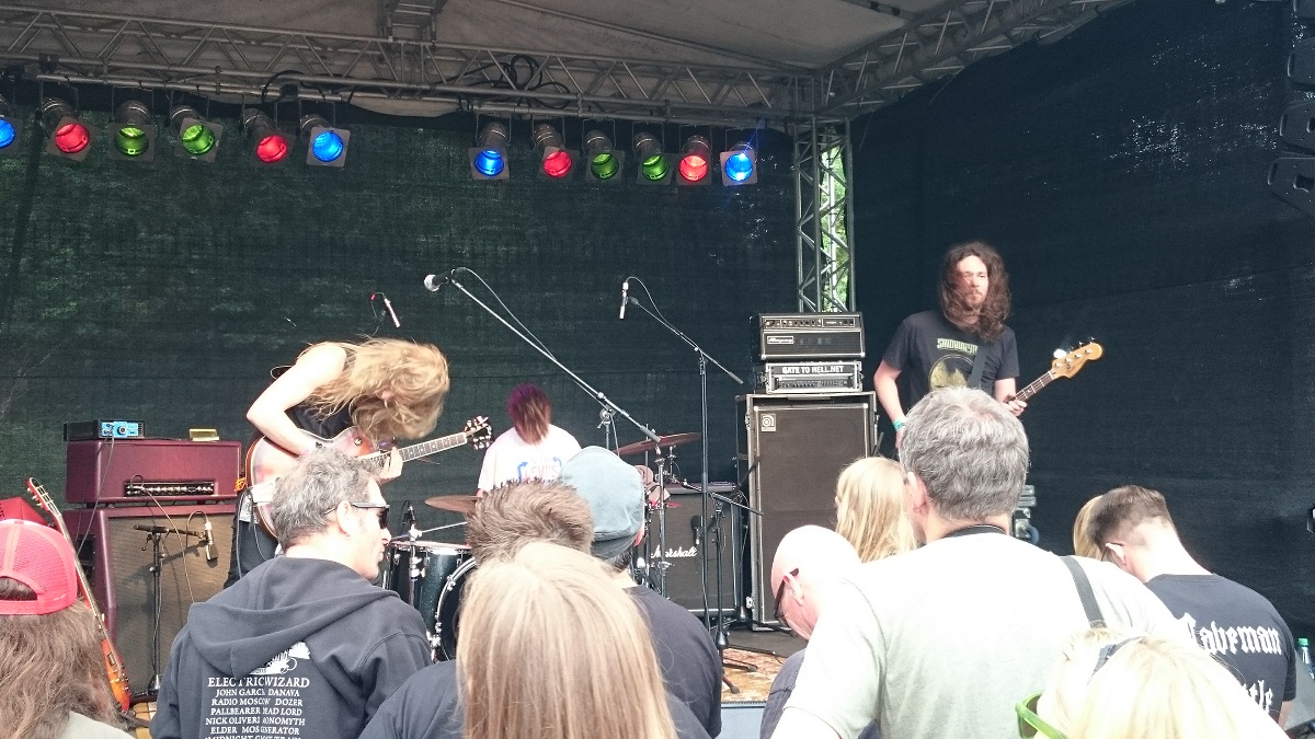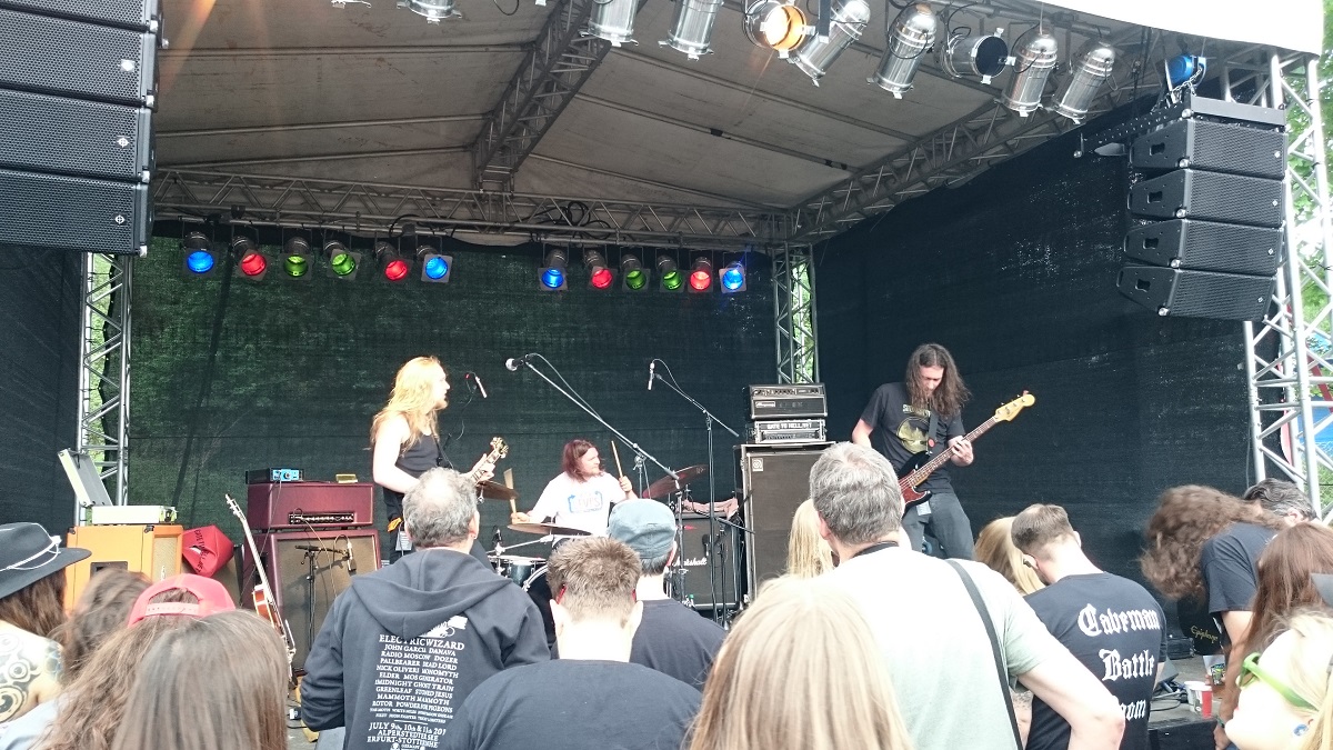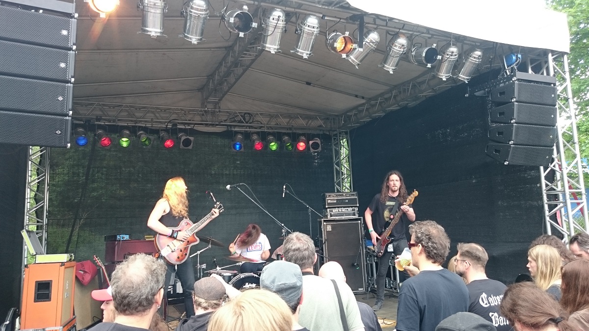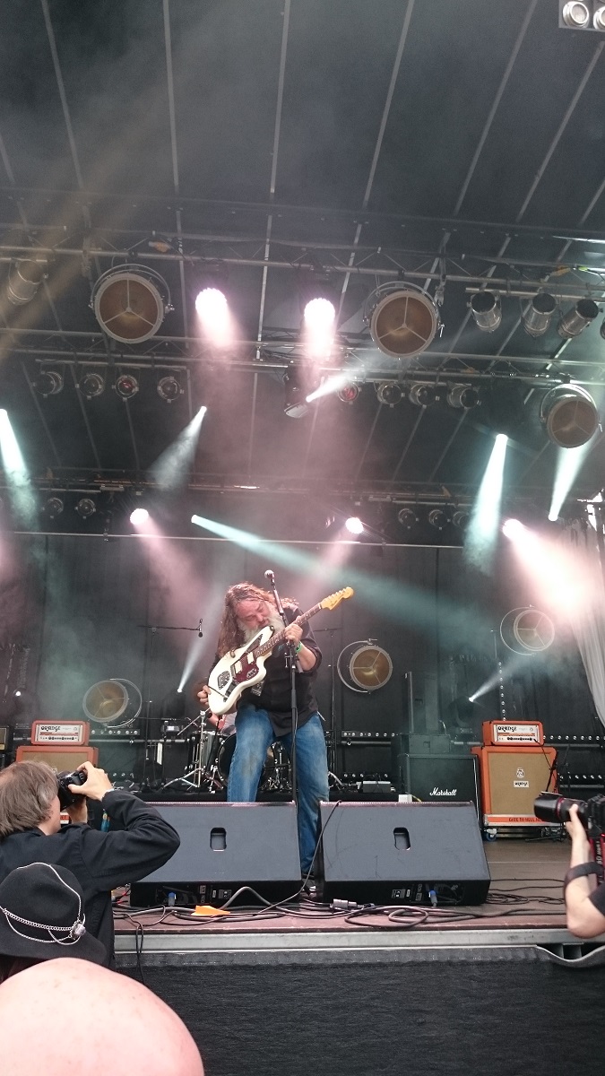 BLACK LUNG – was hab ich mich darauf gefreut, was hab ich die gefeiert, wie genial passen die ins Tal der Musikbekloppten…?! Sehr melodisch, dabei hart genug ohne zum Geschrubbe zu mutieren, volle Konzentration im Spiel und dabei mit Hingabe und Leidenschaft voll drin, und der Begriff „Rampensau“ findet auch ein wenig Neudefinition in Elias, wenn eine der genialsten Coverversionen der letzten Jahre – Black Sabbaths Wizard – uns im Gehörgang fast wie auf der Zuge zergeht.