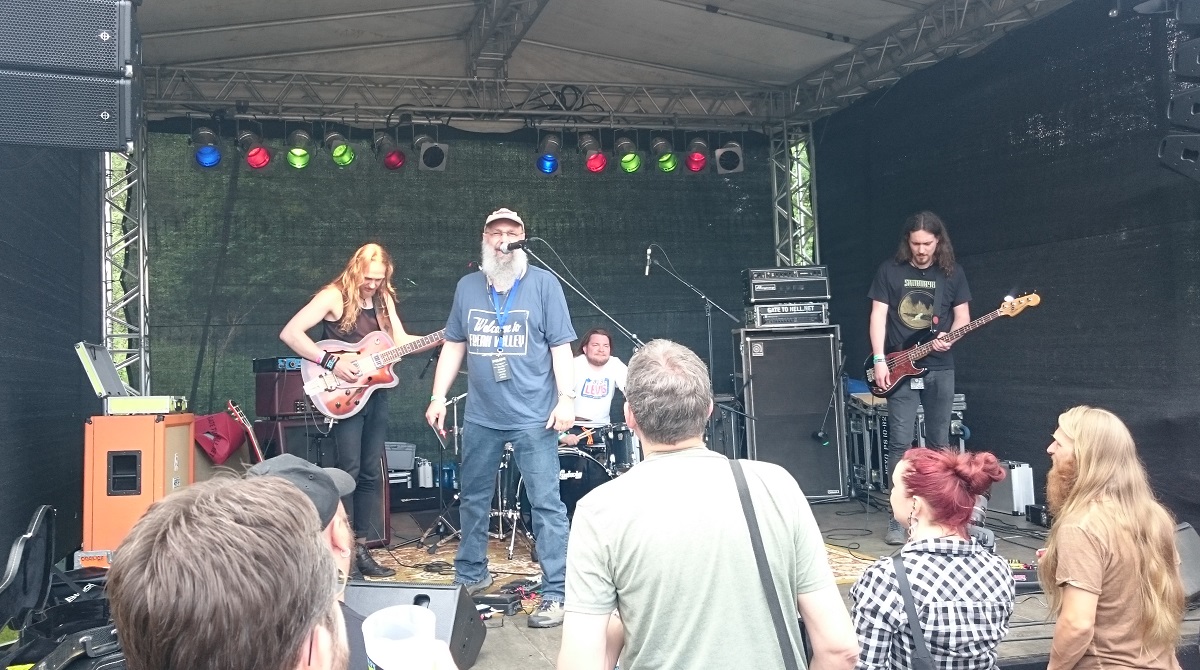 Rundumblick ins Grün genießen und nicht zuletzt ein paar Heißgetränke mit erdölähnlicher Konsistenz in den Kopf schütten, es gilt ja schließlich, das Wake’n’Bake mit MOTHER ENGINE nicht zu verpassen. Einfach fantastisch, was die drei Plauener immer wieder mit uns anstellen. Wer sich da nicht mitbewegt, ist entweder taub, noch im Wachkoma oder anderweitig seltsam veranlagt.