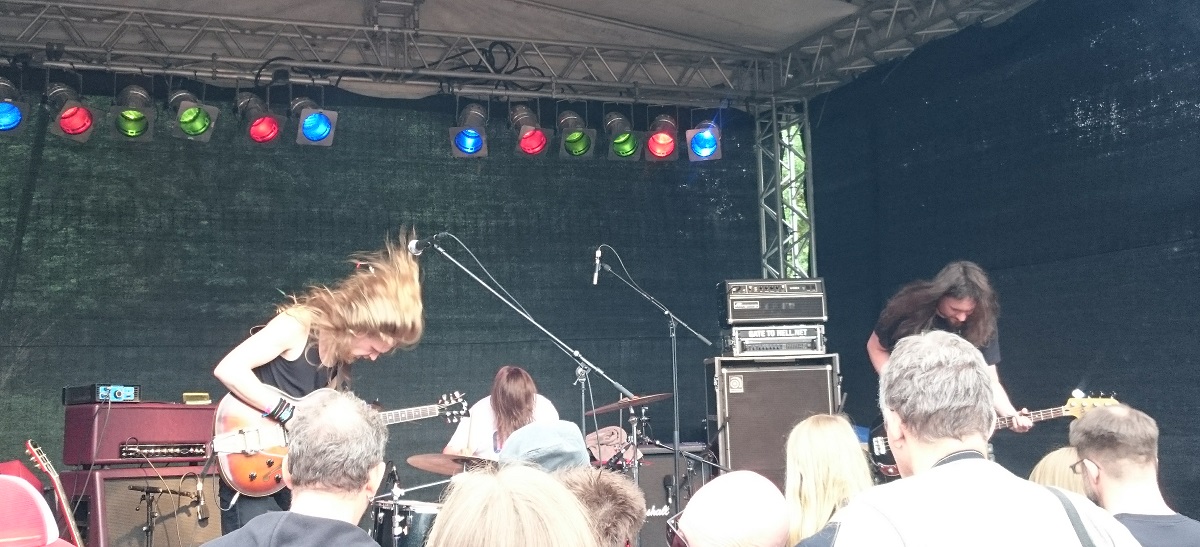 Das Publikum und die allgemeine Feierlaune kommen schnellstens in Fahrt, kein Wunder – mit BABY WOODROSE bieten die Rockfreaks den ersten richtig fetten Knaller auf.