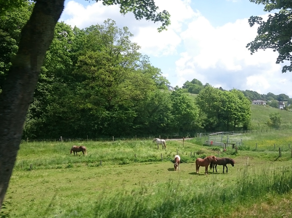 Morgendliche Besucher im Zelt, sattes Grün, unkonventioneller Shuttle-Service der ländlichen Art, überall Ponys…