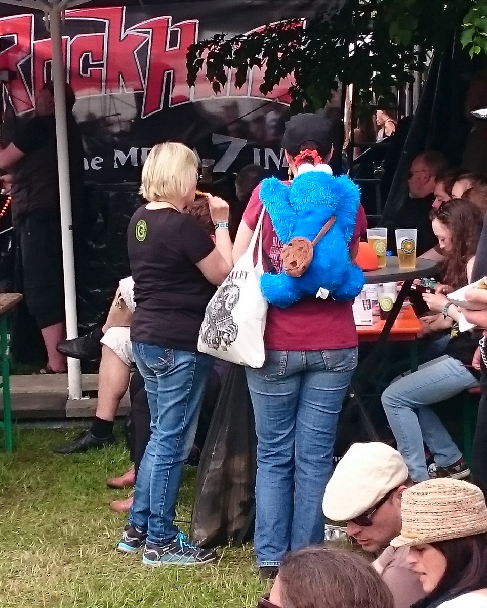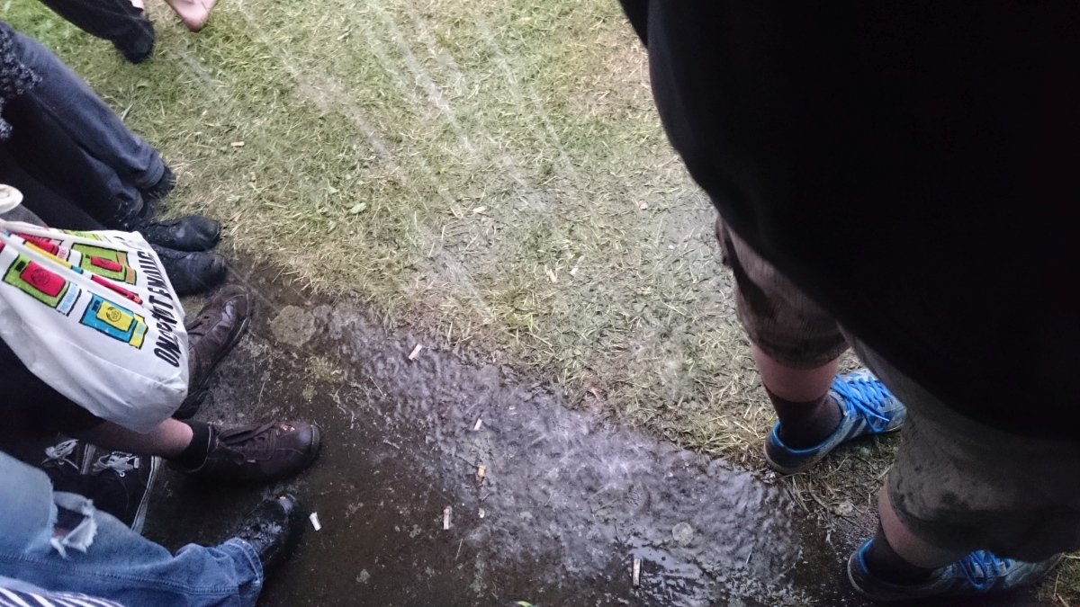 Pälzer Woi, ein paar Eindrücke, best Rucksack of Show, und schon sind wir bei exzellenter Hirnmassage à la ROTOR angelangt. Der Himmel öffnete die Schleusen, aber da zum Glück das gröbste Gewitter am Gelände vorbeizog, wurde einfach im strömenden Regen weitergetanzt, Wunderkerzen gezündet, Wasserbälle hin und her geschubst und sich am köstlichen Gewummer ergötzt, das da von der Bühne schallte. Immer und immer wieder ein Hochgenuss und eine Freude, sowohl diese Band als auch das „scheiß auf Regen, geile Mucke“- Publikum hier.