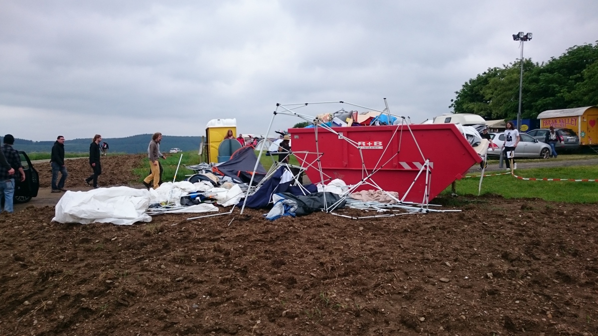 In diesem Falle was vom Wochenende übrigblieb: Einige zerrupfte, kollabierte Zelte und Pavillons, der übliche Ausschuss an Faltstühlen, ein Gemisch aus Sonnenbrand, Tanzmuskelkater und nassen Klamotten und auf’s Neue ein gigantischer Haufen toller Erinnerungen, Bilder, Melodien, Gesichter, Umarmungen, schallendes Gelächter, Gänsehaut.