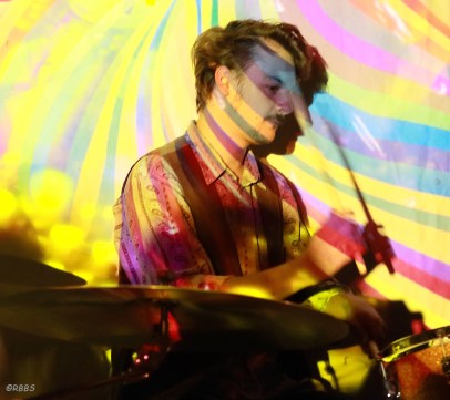 (ds) Peter Petersen startete gegen 23:30 Uhr die erste einer langen Reihe visueller Raketen, die uns, natürlich im Zusammenspiel mit dem Saiten- und Schlagwerk (T)Raumschiff aus Reutlingen in die „Anderswelt“ flogen: behutsam, farbenfroh, schwerelos ein- und fortgroovend, ein Erlebnis der besonderen Art.