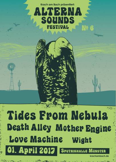 (pa) Dieses Jahr wurde meine Vorfreude wegen der Absage von den Niederländern Death Alley leider etwas gebremst – es folgte ein mehr als würdiger Ersatz. Zum nun dritten Mal hat es mich auf das „Alterna Sounds Festival“ nach Münster gezogen. 2014 das erste Mal unter anderen mit Monkey 3 und Colour Haze, 2016 mit Greenleaf und Electric Moon und 2017 mit Tides Of Nebula und Heat.