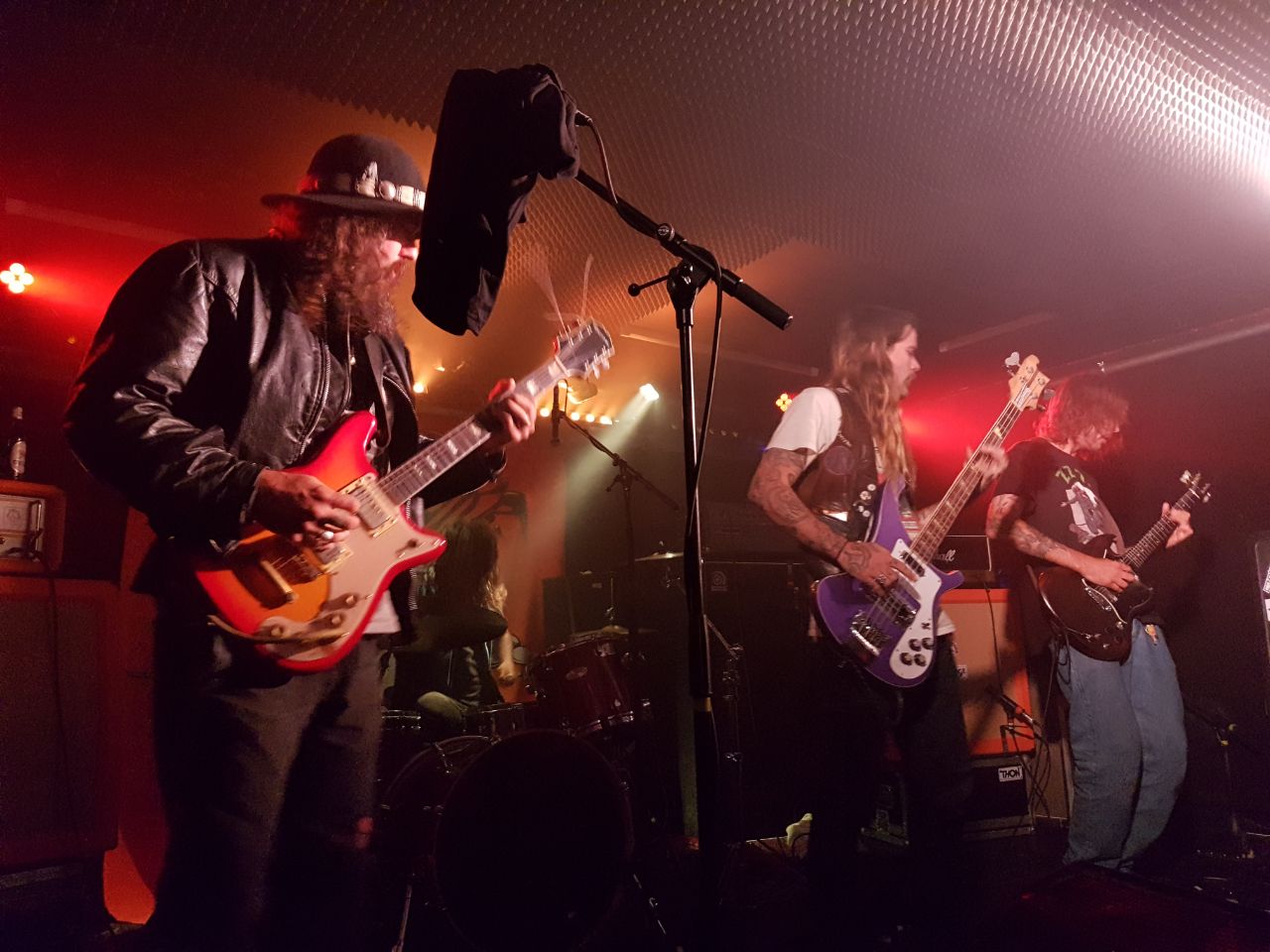 und für genial befunden, bitte lass mich durchhalten und die Jungs Austin Ayub, Richie Belton, Gabe Messer und Justin Figueroa beim Roadburn Freitag 00:20 das Roky Erickson Set spielen hören! Heute wird schon mal geübt und die Nacht für Alligatoren kalt! Der Auftritt insgesamt ein Rausch: rot wie Blut, schwarz wie Ebenholz, Schweiß, Hut, Charme….es gibt nicht sehr viele Infos über diese Jam-Band aus St. Diego, aber es sei gesagt: Letztes Jahr im Mai gab es ne Split EP mit Earthless (ja, echt! Acid Crusher / Mount Swan).