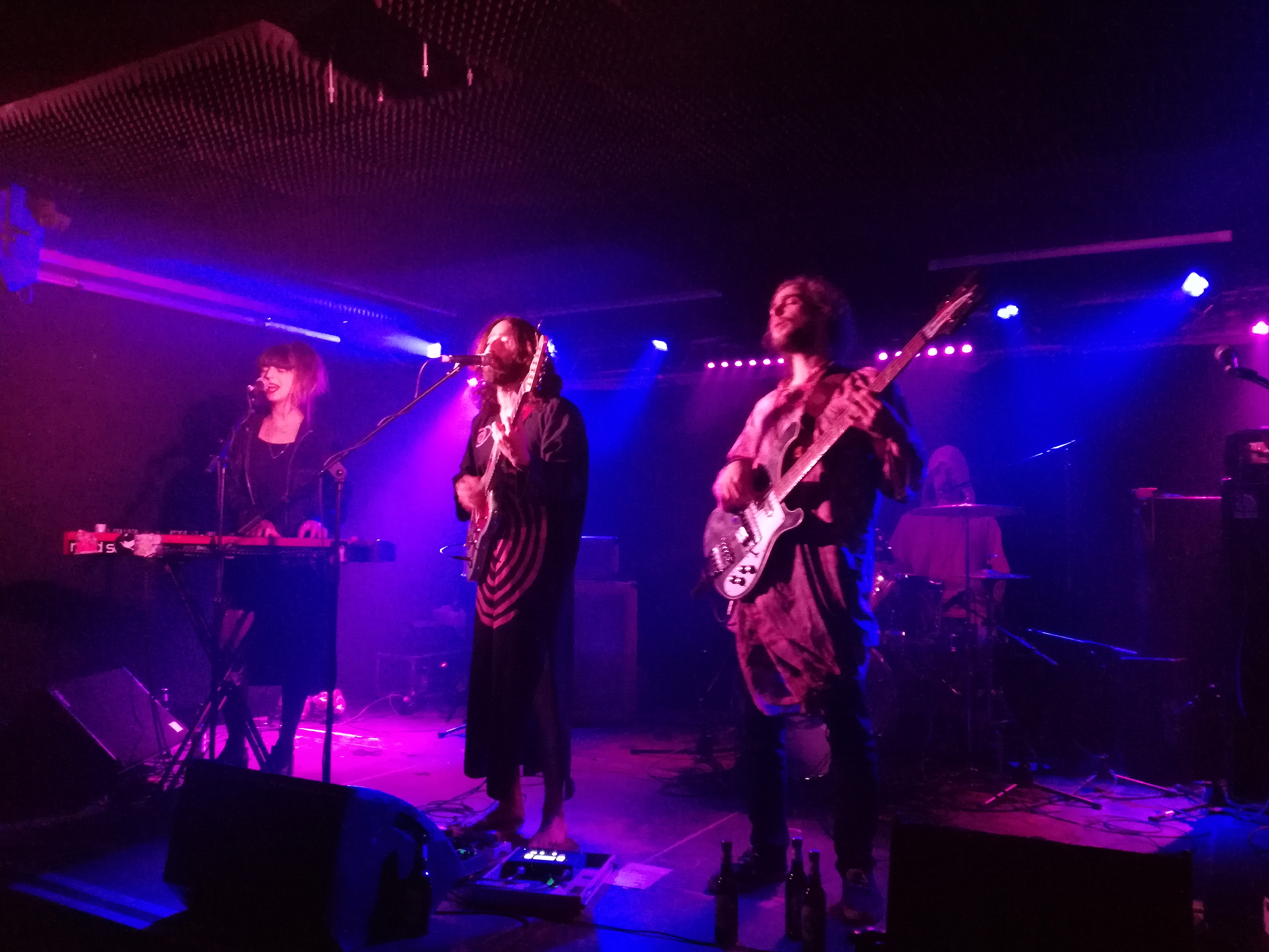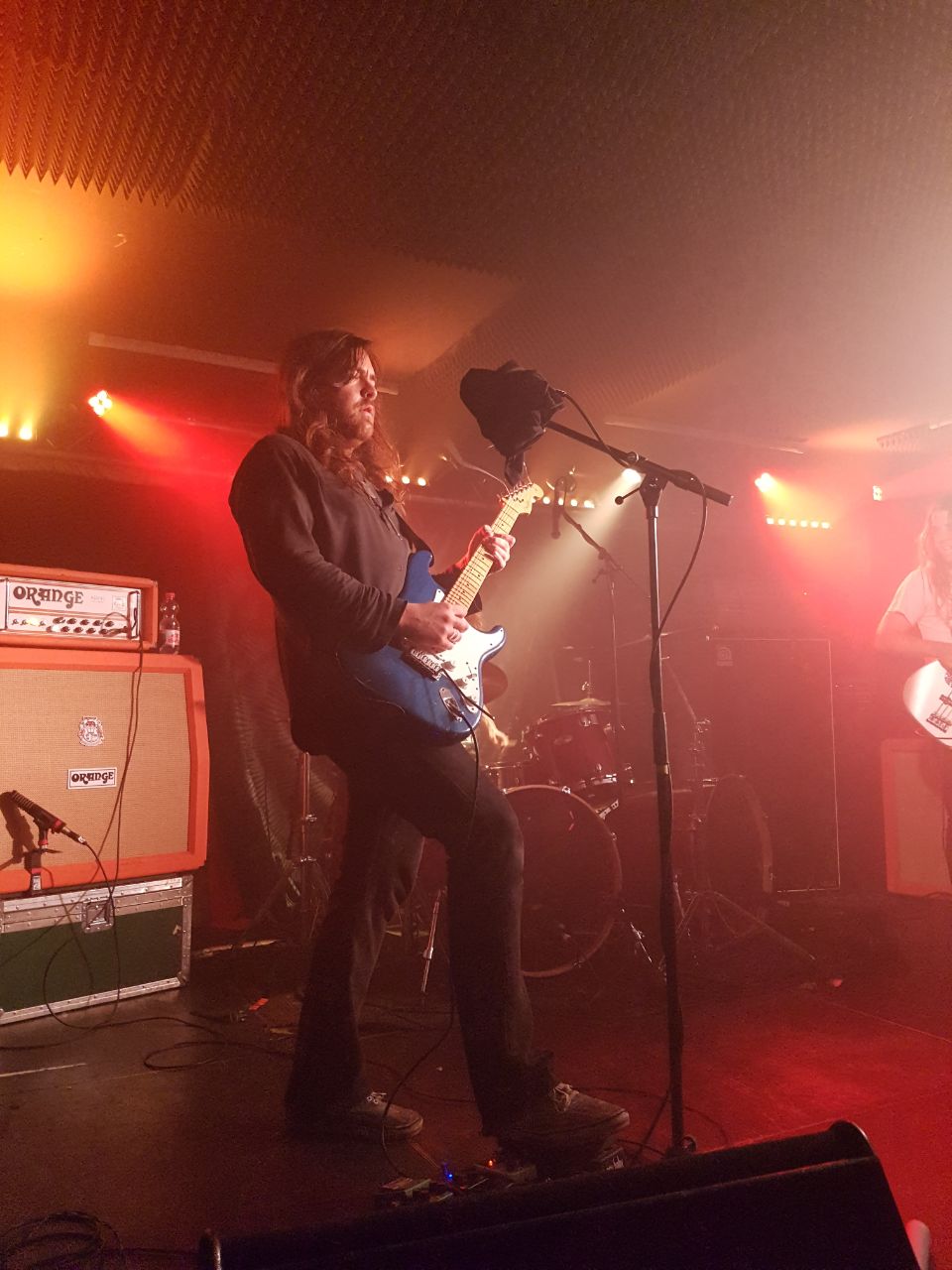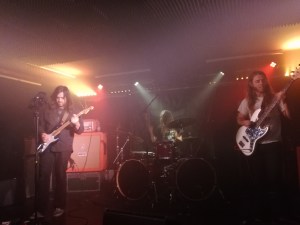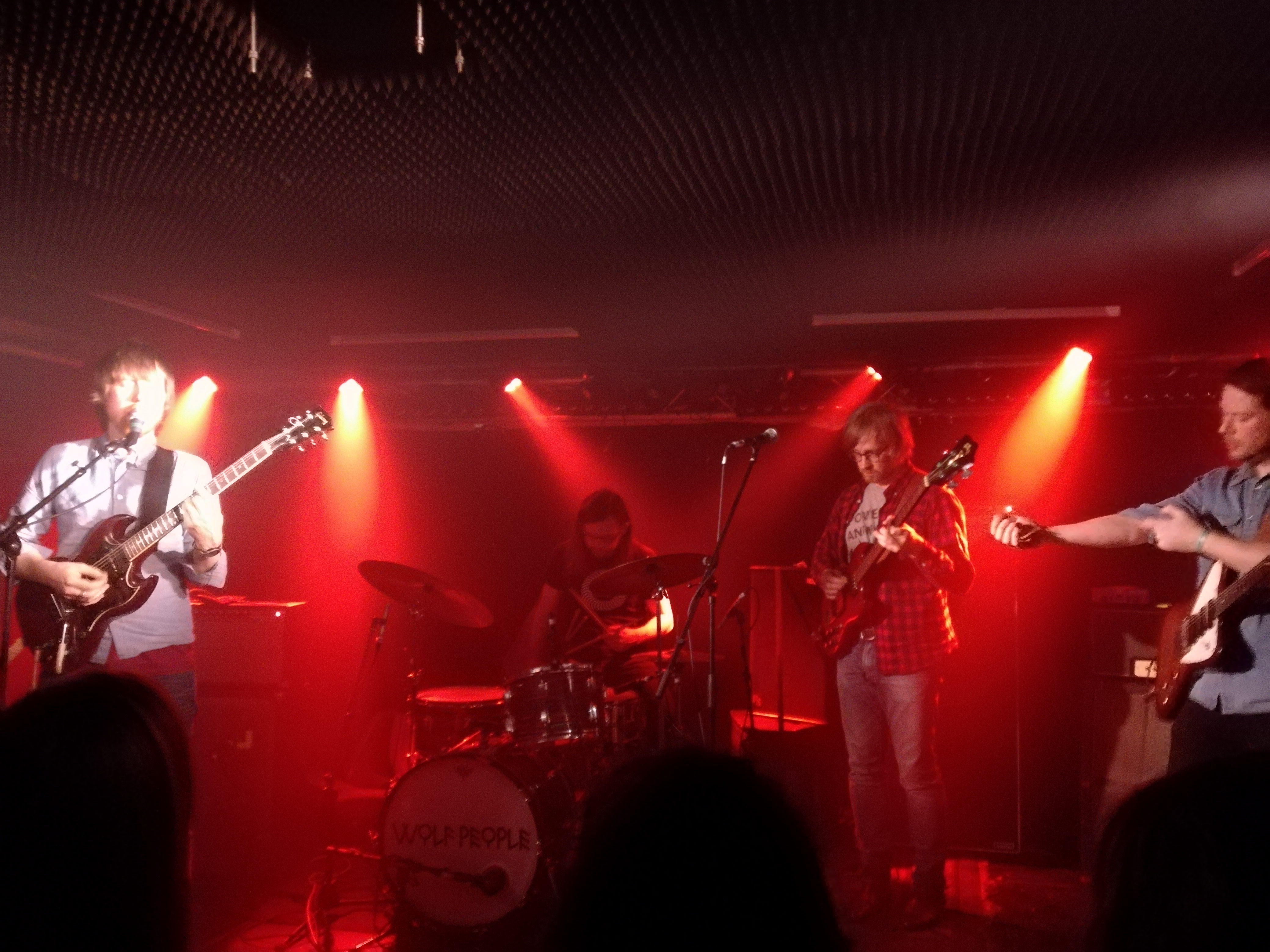 Beliebteste Band des Abends: Wolf People – bis zum Mischpult wird mitgeschunkelt. Zugegeben, noch unter dem Einfluss der beiden vorherigen Bands, befinde ich die ersten Songs etwas , ja, zu ruhig. Britisch und nerdig bieten die Herren einzigartige Ambivalenz. Der sehr schöne Simon & Garfunkel Gesang von Jack Sharp wechselt ab von popig bis heavyfuzzpsychsludge – Gemisch, krachend rübergebracht von Tom Watt am Schlagzeug, Dan Davies am Bass und Joe Hollick, Gitarre 2.