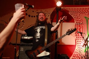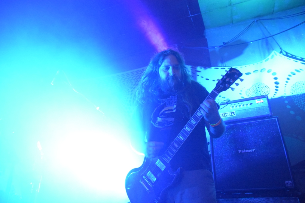 Suma: Brett, woouw, das volle Brett wird hier angereicht. Wenn die Welt untergeht überlebt wer? – Die Kakerlake!! Die können´s eben, die Schweden. Da wird gedoomt und gerifft, in wahnwitziger Aufstellung drängeln sich die Musiker auf der kleinen Bühne im Foyer. So viel los, ich konnte mich gar nicht sattsehen und hören! In Düsterem Nebelgehüllt, geblendet von 1000 Strahlen wirbelt Suma wie ein Orkan durch den Raum. Der Schlagzeuger schwitzt und windet sich, Mr. Effektgerätemaster bildet den ruhigen Pol, ….wie schon 2012 hier gespielt? Da steckte ich ja leider, leider noch in den Kinderschuhen, aber ab jetzt wird dieser Name nicht mehr aus dem Gedächtnis verschwinden!