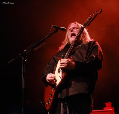 Und zum dritten: It´s Bluestime mit dem „Inside Outside Woman Blues“, feiner Stoff und dadurch auch die Gewissheit das wir noch ´ne Weile photografieren können, dauert ja, dieser Blues. Warren steigert sich rein, zieht die Saiten auf zwölf, arbeitet die Riffs auch mit dem Gesicht auf und mit….und Matt, Jorgen und Danny grooven, Blues at it´s best.