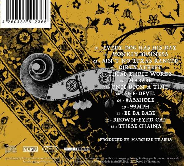 1.) Every Dog Has His Day // 2.) Monkey Business // 3.) Ain`t No Texas Ranger // 4.) Dirty Street 5.) These Three Words // 6. )Mababe // 7.) Once Upon A Time // 8.) She-Devil // 9.) #Asshole // 10.) 99 MPH // 11.) Be Ba Babe // 12.) Brown-Eyed Gal // These Chains