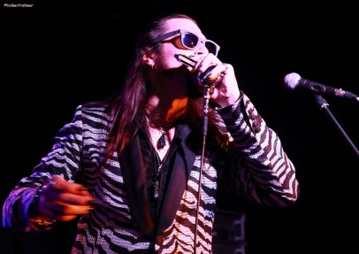 Das Gruenlingsche Outfit passte zur Spielweise: schrill, zupackend, zubeißend, sehr virtuos in seinen Solis, aber nie das Gesamtgefüge verlassend oder vernachlässigend, aber dafür sorgt eh das unumstrittetene Schwergewicht in Sachen zeitgenössischer Chicago Blues, Nick Moss.