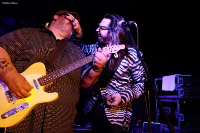 Nick ist ein Pfund an seiner kräftig bearbeiteten Telecaster und natürlich auch stimmlich und mit Dennis als Harmonikaner und zweimaligem Shouter am Gesangsmikro gewann der Bandsound zusätzliche Klasse, ein Bluespackage, das wirklich und wahrhaftig keine Wünsche offen ließ. Das Volk im Saal ging öfter begeistert in die Offensive und spendete Szenenapplaus…..das Quintett war aber auch gut. Nick F. und Patrick bauten das perfekte Grundgerüst auf, immer ein Zehntel hinter Gitarre und Harp, so daß sich diese beiden perfekt antrieben, ergänzten, brillierten, und Taylor sorgte mit Honky Tonk Piano für die Vollendung des rundrum geilen Sounds.