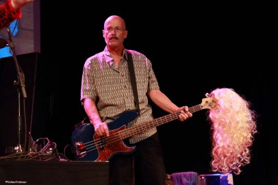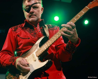 1994 entstand als großartiges Statement die Morgan/Suhler CD „Let The Dogs Run“, von der auch einige Songs den Weg in ihre heutige Setlist fanden, wie z.B. „Roll Me“ oder „Ruby Lee“. Schöne Einlage beim covern des Hound Dog Taylor´schen Slidegitarrenblues „Give Me Back My Wig“, als Jim plötzlich mit einer Perücke ankam und diese für die Zeit dieses Alltimeklassikers den Bass von Drew schmückte, die ruppig raue Interpretation von heute passte perfekt zum Original. Und dann dieser Slow Blues, der uns allen, wirklich und wahrhaftig allen, die Schuhe aus- und die Kopfhaut nach hinten zog: „Blues For Al And Peg“. Man man man, hört euch das bitte an, das ist höchste Blueskunst, und das Ganze auch noch garniert mit einem Pink Floyd Zitat! Leider wird die Tour der beiden Stratocaster Virtuosen wohl ein einmaliges Erlebnis für uns Europäer bleiben da Mike beruflich sehr eingespannt in einem Motorradladen in Texas arbeitet…..