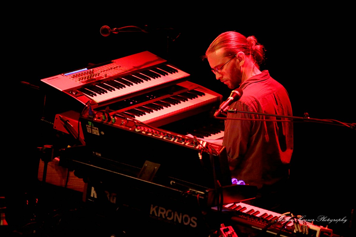 „Latex Solar Beef“ eröffnete das Konzert sehr heavy-rockig. Der Funke der elektrisierenden Begeisterung zwischen Band und Fans sprang sofort rüber. Im Line-Up der Band konnte man, neben den Virtuoso-Routiniers – Scheila Gonzalez am Saxophon, Keyboards, Klarinette, Querflöte & Vocals; Ryan Brown am Schlagzeug & Vocals; Kurt Morgan am Bass & Vocals und Chris Norton an den Keyboards & Vocals zwei sehr positive Musiker-Veränderungen vom ersten Takt an erkennen.