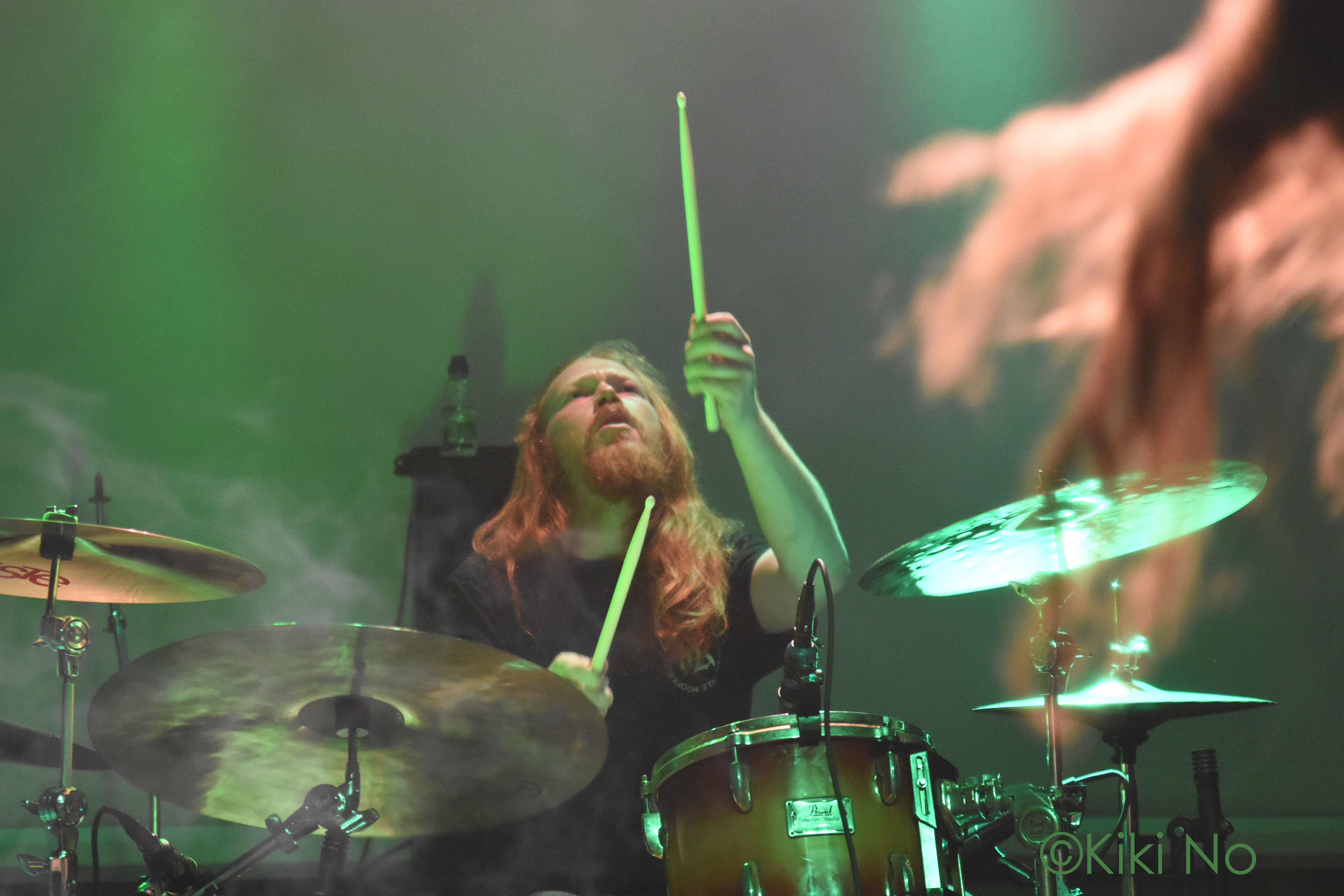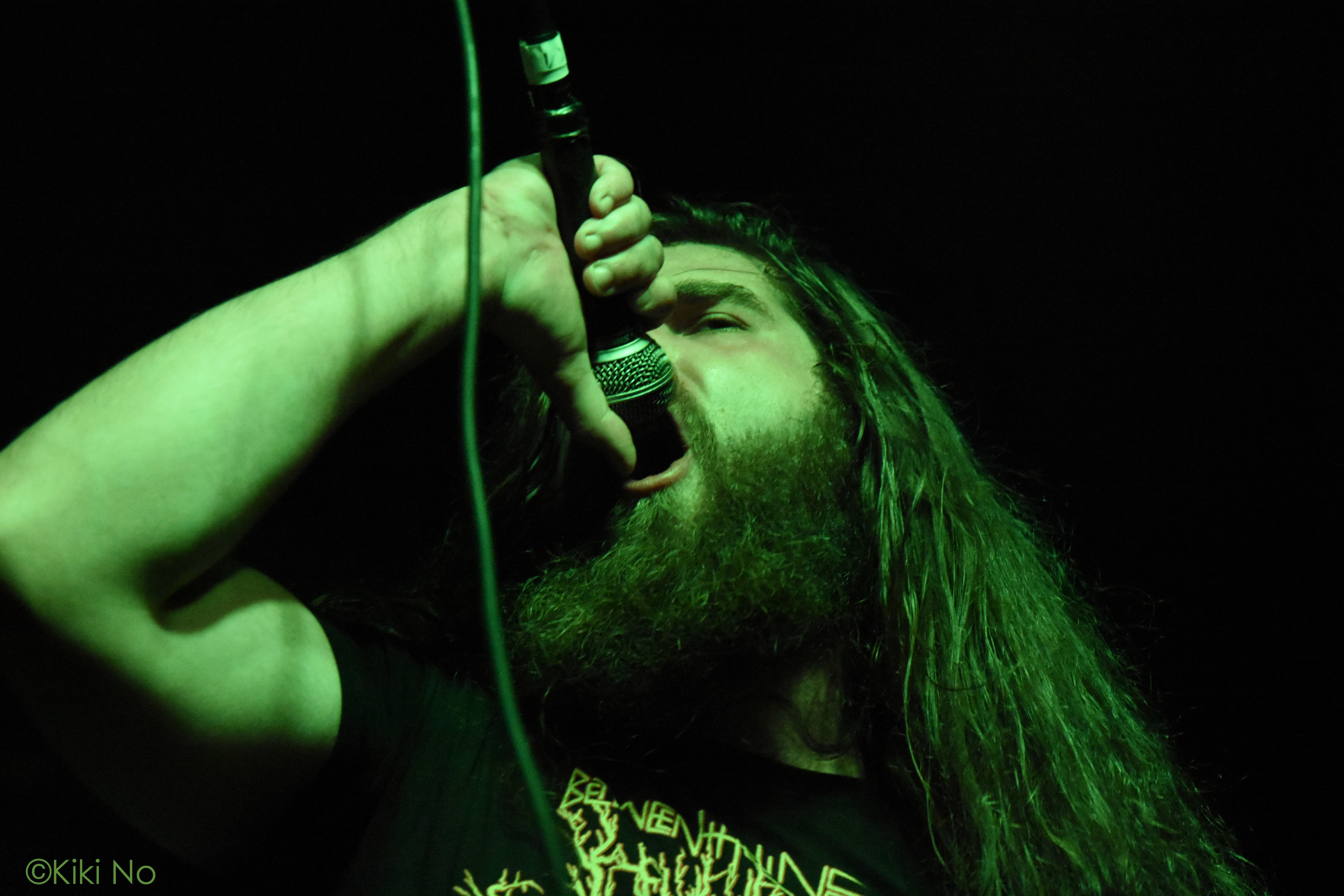 Die Iren aus Galway entführen uns in ihre eigene ungewöhnliche Welt. Voll brutaler, gefräßiger Schleimmonster. War ich im September begeistert als ich Ten Ton Slug beim Emerald Haze in Dublin erstmals zu Hören bekommen habe, bin ich jetzt aus dem Häuschen. Endlich was zum Zuhause auflegen am Start. Die Songs sind ausgewogen abgemischt, obwohl ich mir nicht sicher bin auf welche Art der räuberischen Nacktschneckenkannibalen die Jungs sich spezialisiert haben – Limax maximus ? Boettgerilla pallens ? Oder doch eher Euglandina rosea? Es herrscht Krieg im Reich der Weichtiere, fressen und gefressen werden. Die Riffs sitzen, gefährlich an den Klippen, Gesangsgrollen tauscht sich mit Schneckendrohungen aus. „Bow down, Follow, Kneel to, The Matriarch of Slime !“ Der Rhythmus ist doomy, hypnotisch und natürlich Kopfnickbar. Die drei Songs sind gewaltig und doch nur Teaser für MEHR! Der Livegenuß legt noch einmal ne Schippe drauf, wer also 2018 ordentlich Wumms für seinem Club buchen möchte, dem sei die Schnecke wärmstens empfohlen. Ein goldener Batzen Schleim aus Irland.