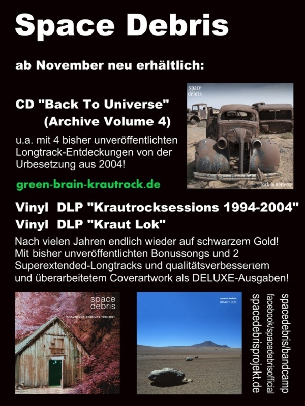 Diese CD betört! Jeder Track ist auf seine Art Krautrockpsychedelik vom Feinsten. Und falls Andere das anders sehen: Alleine schon „Psycho Monstermountain“ lohnt den Kauf dieser CD. Und gerade dieses spontane Improvisieren, egal ob live auf der Bühne oder live im Studio, zeichnet ja Space Debris so vehement aus.