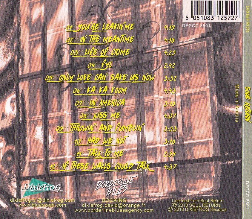 Bei “Talk To Me” versprühen SR Latino-Americana musikalischen Flair. Kellie’s Harmonika Solo wird Liebhaber der Band WAR & Lee Oscar begeistern. Soul Return finalisieren das Album mit dem absoluten Höhepunkt: “If These Walls Could Talk”. Das ruhige, einfühlsame und vom Text her inhaltsvolle Intro wird die Zuhören fesseln. Zum Abschluß geht es in eine lautstarke Jam-Session der ganzen Band über, vor allem durch die stimmlich explodierende Kellie und JJ an der Gibson.