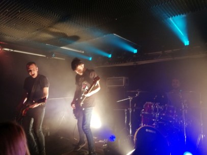 BÄÄÄM, diese Präzision, dieser Druck, diese Klangfülle, der Funke springt in Millisekunden über, das Publikum tanzt und klatscht und grinst, teils mit genießerisch geschlossenen Augen und es ist einfach wunderbar. Post-Rock der ganz feinen Sorte von einer dieser Drei-Mann-Combos, die einen schier aus den Latschen reißt und zum Rundflug einlädt – nicht umsonst freue ich mich über jede sich bietende Gelegenheit, Piotr, Marek und Helmes mal wieder auf einer Bühne zu sehen.