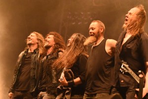 Rein schwermetallisch, wie selten zuvor auf diesem Festival erlebt, gaben sich dann „Candlemass“ die Ehre. Die einst schon Mitte der 80er von Mastermind Leif Edling ins Leben gerufene Epic-Doom-Metal Band – so viel schon mal vorab – traf bei mir voll ins Schwarze. Für ihr musikalisches Reservoir spielten sie sogar ein eher flotteres Set, das bisweilen schon deutliche Züge des reinen „NWOBHM“ (New Wave Of British Heavy Metal) in sich trug. Dass sie unserem Volker nicht gestatteten, seine allseits beliebte Ansage zu machen, will ich jetzt mal bei der Beurteilung außen vor lassen. So schwer es auch fällt. Nach dem Intro ging es mit „Mirror, Mirror“ schon ausgesprochen impulsiv los. Starke Riffs, ein schleppender Bass, treibende Drums. Und all das unterstützt von Mats Levéns starkem Organ. Es fehlte mir quasi an nichts. Meine Zeitmaschine nahm dies ungefragt zum Anlass, mich in die Jahre meiner musikalischen Sozialisierung, Anfang der 80er, zurückzuspülen. Auch wenn das Haupthaar des Rezensenten kaum noch Möglichkeiten bietet, erkennbar geschüttelt zu werden, gab mir am Folgetag mein Nacken zu erkennen, dass trotzdessen irgendetwas am Vorabend passiert sein muss. Über Klassiker wie „Bewitched“, „At The Gallows End“ gelangte man nach fast 60 faszinierenden Minuten zum Rausschmeißer „Solitude“. Die Wucht dieses Gigs hat mich komplett aus den Latschen gehauen. Ich – nein, wir alle – wurden an einem sehr denkwürdigen Abend mit einer Band belohnt, die zweifelsohne ihre deutlich erkennbaren Spuren in der Metal-Welt hinterlassen hat. Als langjähriger Fan des Metal-Genres, und ungeachtet meiner Enttäuschung über die Entwicklung in speziell dieser „Musikszene“, empfand ich es als echtes Privileg, eine klassische Band derart hochkarätig und spielfreudig auftreten zu sehen. Auch wenn an diesem Abend Urgestein Leif Edling selbst aufgrund einer Erkrankung nicht dabei sein konnte, war es mir ein großes Vergnügen. Witzige Randnotiz: zwei Wochen zuvor traf ich Workaholic Per Wiberg inmitten der LP-Verkaufsstände auf dem „Rock Hard Festival“, um einige wenige Worte mit ihm zu wechseln. Dort spielte er bei „Tiamat“, was für mich die sechste Band darstellte, mit der ich diesen Tausendsassa und vor Allem genialen Musiker, live spielen sah. Mit seinem Einsatz für „Candlemass“ auf dem FVF kam sodann die siebte gleich dazu. Und das war genauso auch gut so!