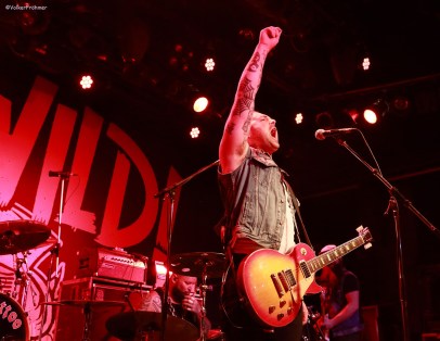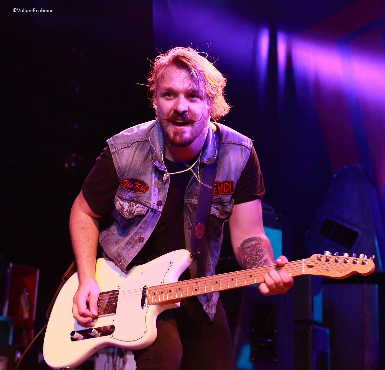 Aber vor deren Auftritt haben die Musikgötter den Schweiß gesetzt. Der uns in Form der mir bis dato unbekannten „The Wild“ aus den Weiten Kanadas präsentiert wurde. Die Jungs um Frontsau Dylan Villain tourten zum ersten Mal in Europa, schienen aber die musikalische Bühnen auch hier im Sturm erobern zu wollen. Wie sie schon mit den ersten Tönen zeigte, war diese junge Band, die mit erst zwei Longplayern im Gepäck gen Europa reiste, ein Gewinn für alle Beteiligten. Sie selbst verkauften aus eigenen Bekundungen ohnehin zu Genüge Tonträger während dieser Tour und ließen frühzeitig erkennen, dass sie auch im Kohlenpott unsere Herzen – und Ohren – im Sturm erobern wollten. „Rose Tattoo“ konnten sich zudem sicherlich kaum einen besseren Einheizer wünschen und vor der Bühne wurde es von Song zu Song mitreißender, weil der Blues-getränkte „Rock’n’Roll“ der vier Kanadier keinen Besucher mehr ruhig stehen ließ. Dieser fiese, dreckige Sound der Jungs, der mal als der Soundtrack zu einer wilden „Sommer-Party“ daher kam, um uns dann wieder schnelle Gitarrenriffs, die in mitreißenden Refrains mündeten, um die Ohren zu hauen, um final in Soli überzugehen, die dich flugs daran erinnerten, dass du deine Airguitar glücklicherweise doch dabei hattest.