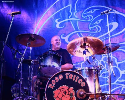 Der etatmäßige Drummer Paul DeMarco wurde wegen Waffenschieberei kürzlich erst zu sechs Jahren Knast verurteilt und war somit verhindert. Irgendwie stimmig für diese Band. Grundsätzlich waren „Rose Tattoo“ für mich immer eine der wichtigsten Bands meiner frühmusikalischen Erziehung – Hard Rocker, die den Blues und die Ethik der Arbeiterklasse verpaarten und „echte“ Musik produzierten. Eine Musik, die den Schmerz sowie den Alltagsstress mitschwingen ließ. Im Wesentlichen war dies ja nicht mehr als ein schwerer Blues, der auf Klängen der dominierenden Slide-Gitarre fußte und mit kühnen und unverschämten Texten versehen wurde.
