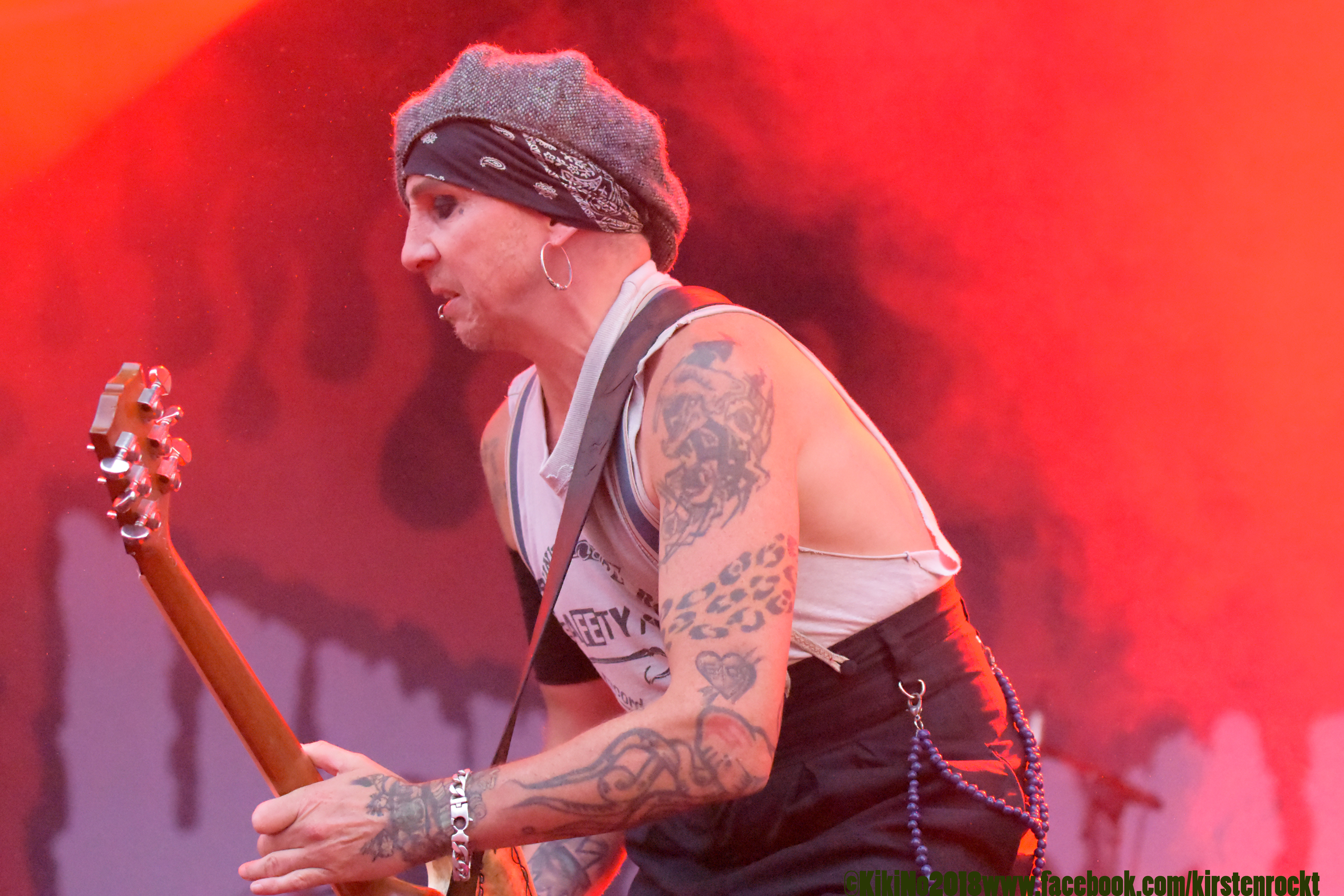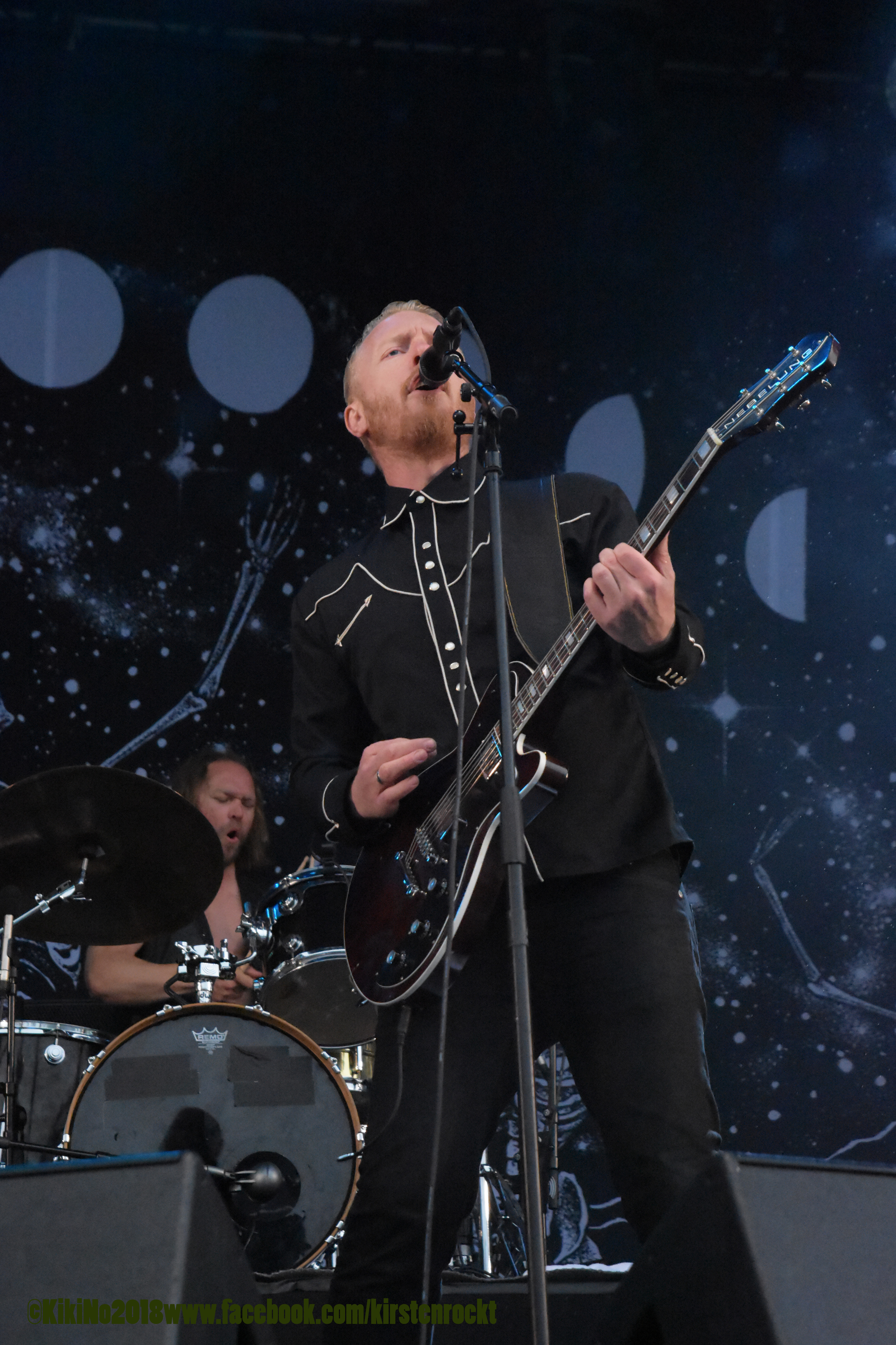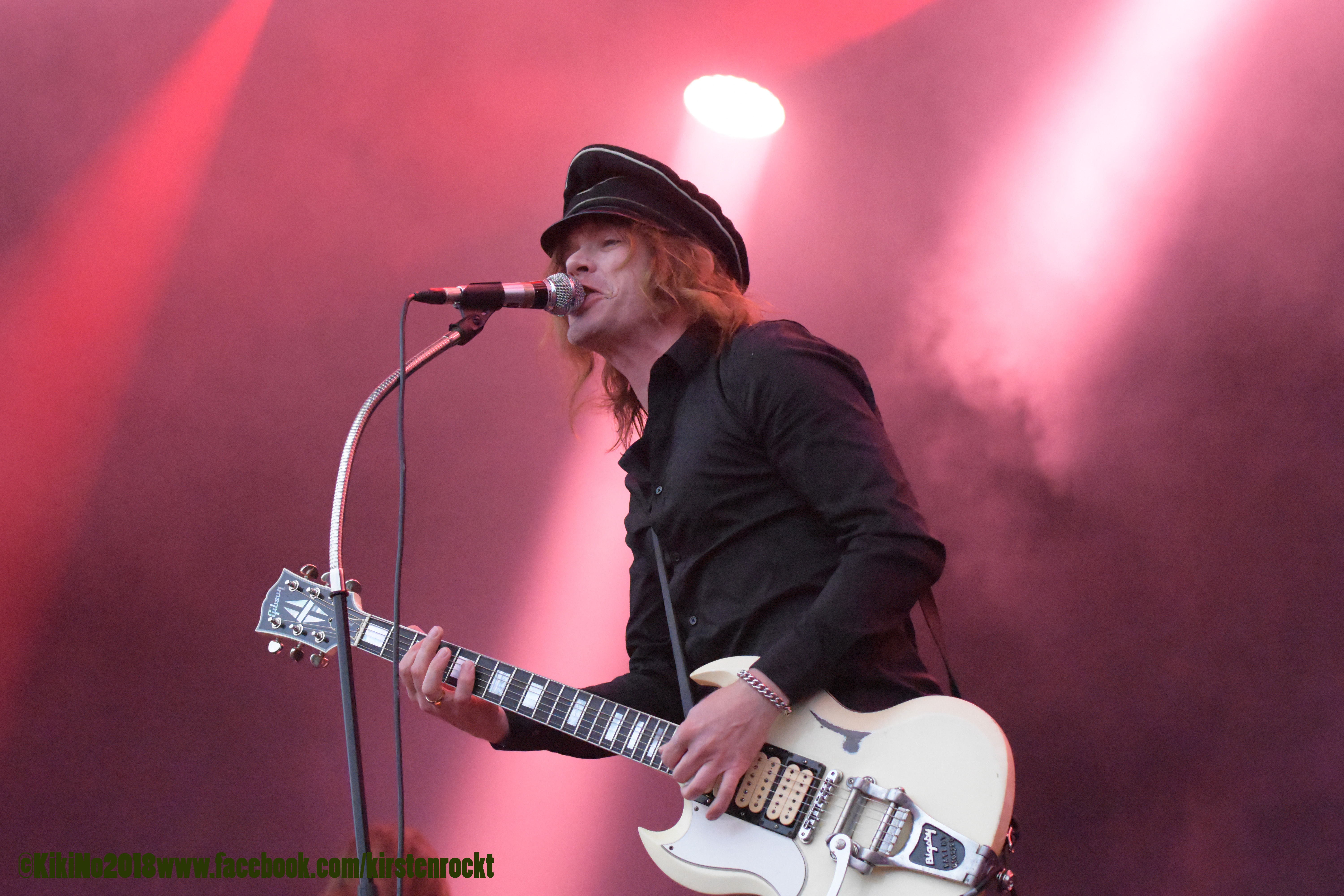 21:40 Der Höhepunkt meines Festival-Tages. The Hellacopters. 2008 aufgelöst, Zitat wiki: Der Abschiedskonzertmarathon, der insgesamt vier Konzerte in zwei Tagen umfasste, wurde als Livestream auf Myspace (!!) übertragen. Wie die Zeit vergeht… 2016 wiederbelebt und neu formiert, nachdem Gitarrist Robert Dahlqvist letztes Jahr verstarb. Nun übernimmt Gründungsmitglied Dregen (Backyard Babies, sind gerade beim Rock Hard Festival aufgetreten) wieder den Platz des verstorbenen Dahlqvist an der Gitarre. Nicke Andersson (eben noch am Schlagzeug bei Lucifer beim Freak Valley Festival 2018) singt alle Hits, die die Band im Laufe der Jahre angesammelt hat. Da mir der Blick auf die über 2m hohe Bühne verborgen bleibt, mangelt es an einer Setlist, Movin’ Right Out of Here war aber auf jeden Fall dabei!