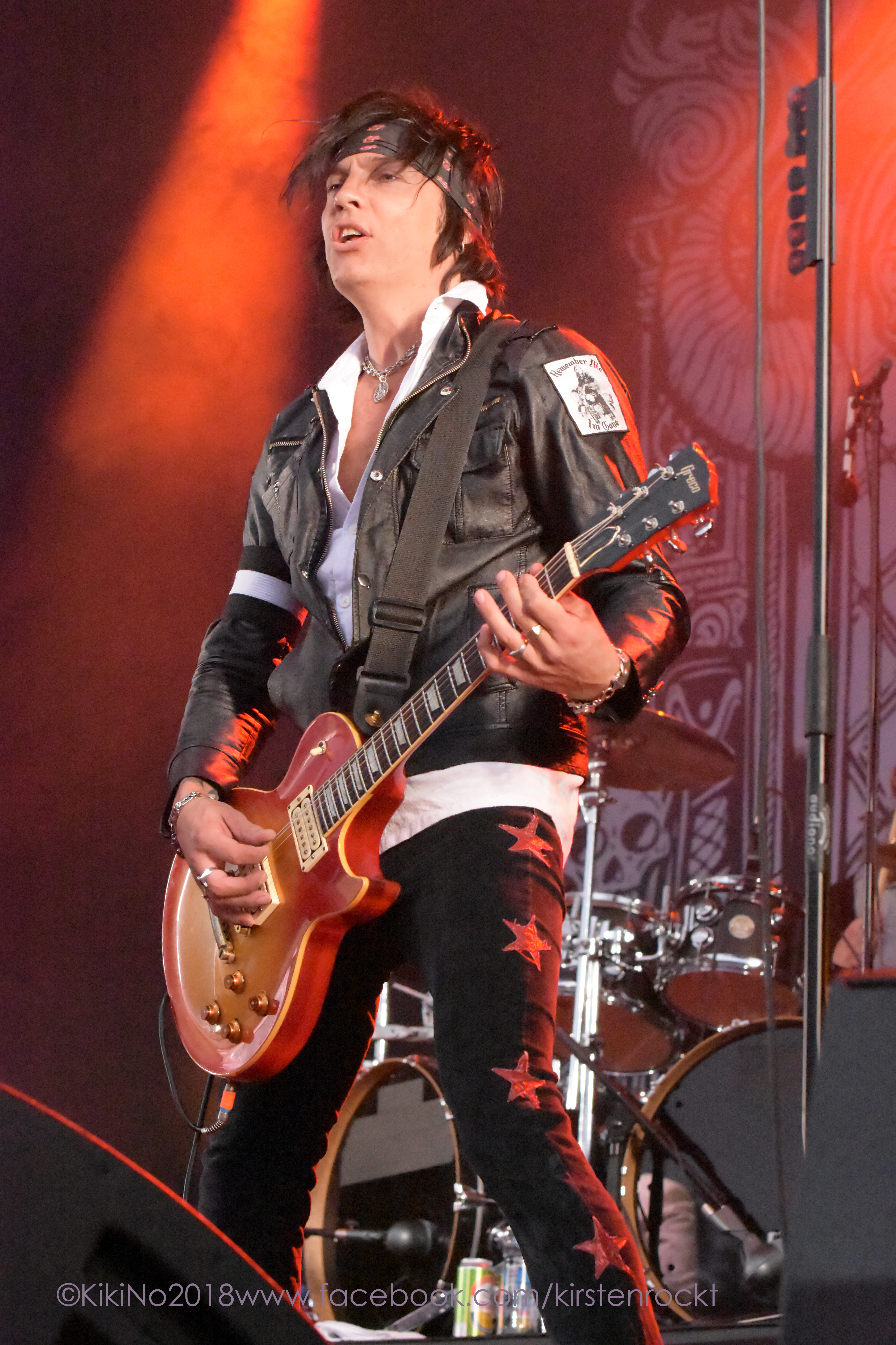 Als nächstes entscheide ich mich Kosmik Boogie Tribe auf der Little-Henrik-Stage zu begutachten. Thomas Brenna und Vegard Strand Holthe, beide bei Lonely Kamel, habe ich direkt schon auf dem Gelände gesichtet und Vorfreude verspürt. Eine echter Treffer, den hier wird „hard core“ gerockt, sogar mit Unterstützung von Petter Baarli, Gitarrist der Backstreet Girls, der für ein paar Songs auf die Bühne gezogen wird. Da wird es etwas eng, dafür aber auch hot. Eine Mischung zwischen Punk und Boogie, mein Haupthaar schüttelt sich angenehm im Takt. Dem norwegischen Publikum ist Begeisterung ja meist nicht so sehr anzumerken, gejubelt wird am Ende aber ausgiebig. Die Jungs aus Oslo sind: THOMAS BRENNA, MORTEN LUNDE, MAGNE VANNEBO, EIRIK MELSTRØM, VEGARD STRAND HOLTHE und mit Sicherheit ein Garant für gute Laune auf jedem Festival!
