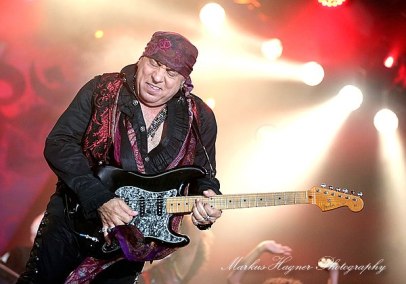 Als die 12 Mann- Band und die 3 afro-amerikanischen Background-Sanges-Grazien das Intro zu „Sweet Soul Music“ intonierten und Little Steven, a.k.a. Steven Van Zandt, mit Hippie-Flair Kopf-Tuch und Schal bekleidet die Bühne betrat ging sofort die Post ab und die Freaks wurden in die „Good Old 70*ies “ retro-versetzt, mit dem musikalischen Elixier aus Rock, Funk, Soul und Blues. „Soulfire“, der Titel-Track des aktuellen Albums wurde von Steve voller Inbrunst und Stolz zelebriert. Gitarristisch duellierte er sich des öfteren mit seinem Counterpart Marc Ribler. Die Bläser-Sektion bot ein Fest für die Ohren dar bei deren Soli. Steve huldigte auch den „Godfather Of Soul“ Mister James Brown bei „Down & Out In New York City“. Leider gesellte sich Southside Johnny, der an diesem Abend beim Bospop nicht weit entfernt gastierte, nicht zum Duett bei „I Don’t Want To Go Home“ bei seinem Song mit zum Duett auf die heilige Bühne. Little Steven hätte noch bis zum Morgengrauen bei soviel Passion weiterspielen können, doch mit dem U2-Cover „Out Of Control“ war finito. Little Steven & The Disciples Of Soul waren der grandiose, musikalisch explosive High-Light-Hammer vom zweiten Tag bei Blues Peer!