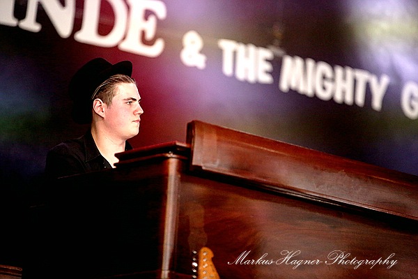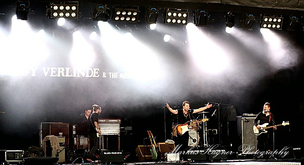 (mh) Sonntag und es ist tierisch heiß in Peer. Trotz der „Saturday Night“ Jubelparty zu Platz 3 für die „Red Devils“, dem Fußball-Nationalteam von Belgien (Gratulation) bei der WM, wollen sich viele Blues-Enthusiasten den Auftritt des Lokalmatadors Guy Verlinde & The Mighty Gators nicht entgehen lassen. Guy, der aus Ghent stammt, feierte ja unlängst sein 10jähriges Bühnen-Jubiläum. Mit „Rock‘N´ Roll In My Radio“ und der traumhaften Version von „Ain’t No Sunshine“ verzauberte er nicht nur die weiblichen Fans. Chapeau, da kam zu der frühen Stunde sofort Stimmung auf. Guy war natürlich nicht nur ein ausdrucksstarker Sänger, er bestach auch vor allem als Slide-Gitarrist bei seinen Soli. Mit Stijn Bervoets an der zweiten Gitarre, Benoit Maddens am Schlagzeug, Karl Zosel am Bass und dem herausragenden Nachwuchs-Hammond-Tastenmann Tom Eylenbosch als Spezialgast hatte Guy exzellente Begleitmusiker um sich geschart. Guy Verlinde & The Mighty Gators haben das Potential großartige „Blues Men“ in der Europäischen Blues-Szene zu werden.