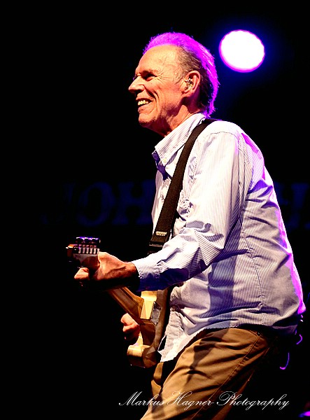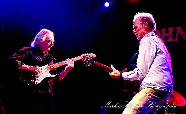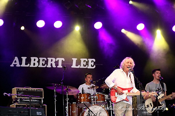 Als nächstes legte Albert Lee mächtig los mit „I’M Ready“. Vorbei sind die Tage der Hogan’s Heroes als Begleitband. Albert gab der Jugend als Kombo eine Chance, mit Ross Spurdie an den Keyboards, Ben Golding am Bass und Ollie Pears als Drummer. Zeit zur Besinnlichkeit wurde es bei „Highwayman“ mit Albert als Tasten-Magier. Und zum Finale knallte „Speedy Gonzales“ Lee einem noch „Country Boy“ um die Ohren. Ein Ohren- und Augenschmaus nicht nur für Gitarren-Freaks. Blues Peer tobte für weitere Zugaben, doch oho präzise nach 1 Stunde war finito, winke, winke und weg war Albert von der Stage. Sofort ab zum Merch-Stand um sein überteuertes Antiquar an Cd’s und DVD’s zu verkoopen. Der Mann hat auch das Business im Blut…
