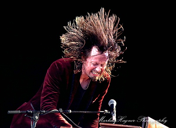 Lachy Doley konzentrierte sich in Peer auf den Blues. Er kokettiert ja auch immer wieder mit Hard-Rock und ist ja auch des öfteren in der Band von Glenn Hughes. Mit Jackie Barnes an den Tama Drums und Chris Pearson am Bass hatte er eine phänomenale Rhythmus-Kombo. Lachy als Zauberer an der Hammond und Hoodoo-Devil am superraren Whammy Clav – Castlebar Clavinet entlockte seinen Darlings unglaubliche Töne. Obendrauf hat der Mann noch eine charismatische Stimme, das Bill Withers Cover von „Use Me“ war „Over The Rainbow“.