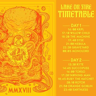 Filed under: Live Reviews, Dÿse, Graveyard, KRPL, Lake On Fire 2018, Monolord, Nebula, The Machine, Willow Child
