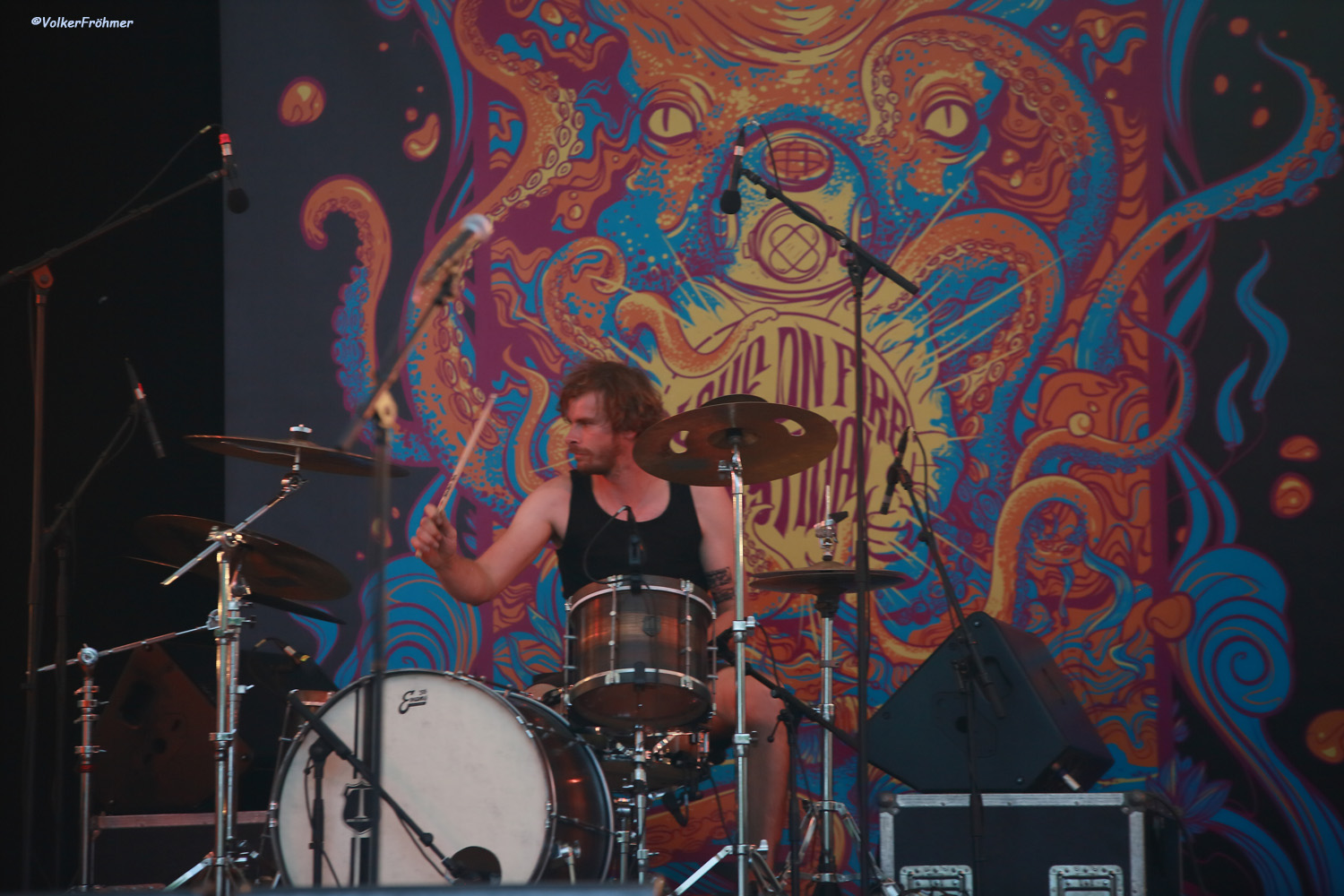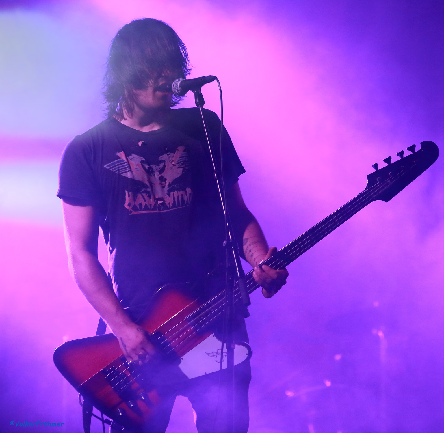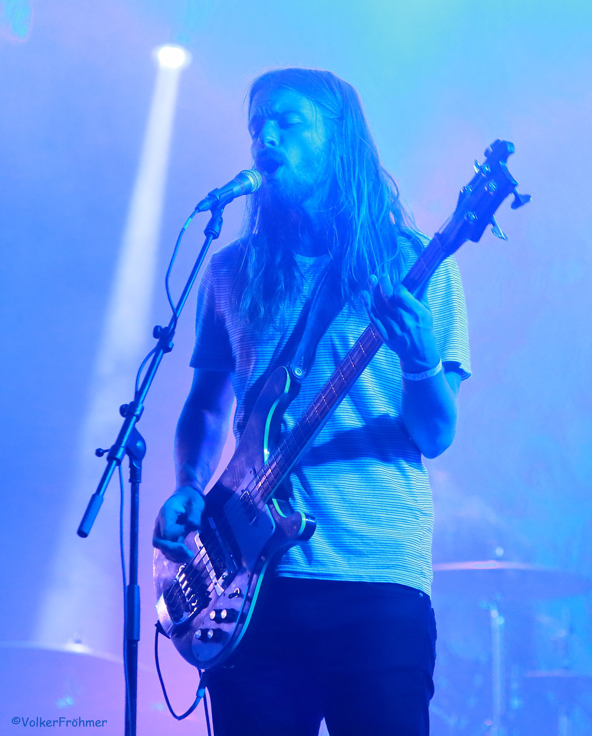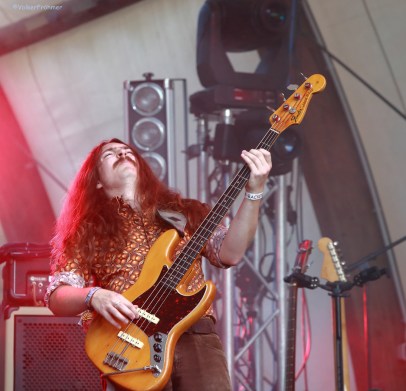 00:05 Uhr: Monolord. Meine vierte Begegnung mit der Band in diesem Jahr! Ich muß leider meine Müdigkeit und Kaputtheit akzeptieren. Photographieren, manchesmal in Schräglage, und Hitze und Musik und viel Bewegung forderten mir einiges ab. Deshalb hab ich die ersten fünf Minuten unphotographiert noch mitgemacht und schlich dann zum Auto. Die Rückfahrt war etwas gesitteter da natürlich stockdunkel, da nützen auch Milliarden Sterne nix, einige Straßenüberquerer auch früh genug erkannt und bremsend ausgebremst und Tiere (Katze, Dachs/Waschbär, Rehkitz) und Menschen (im Auto) und Material verschont.