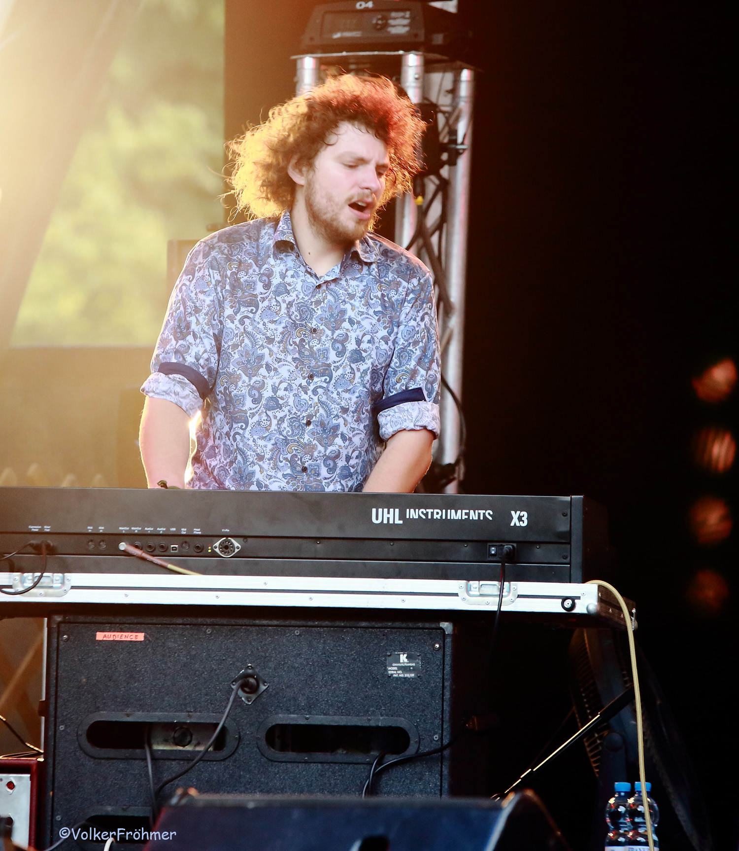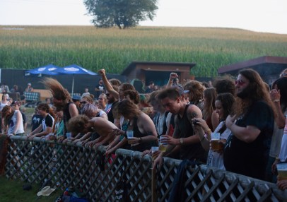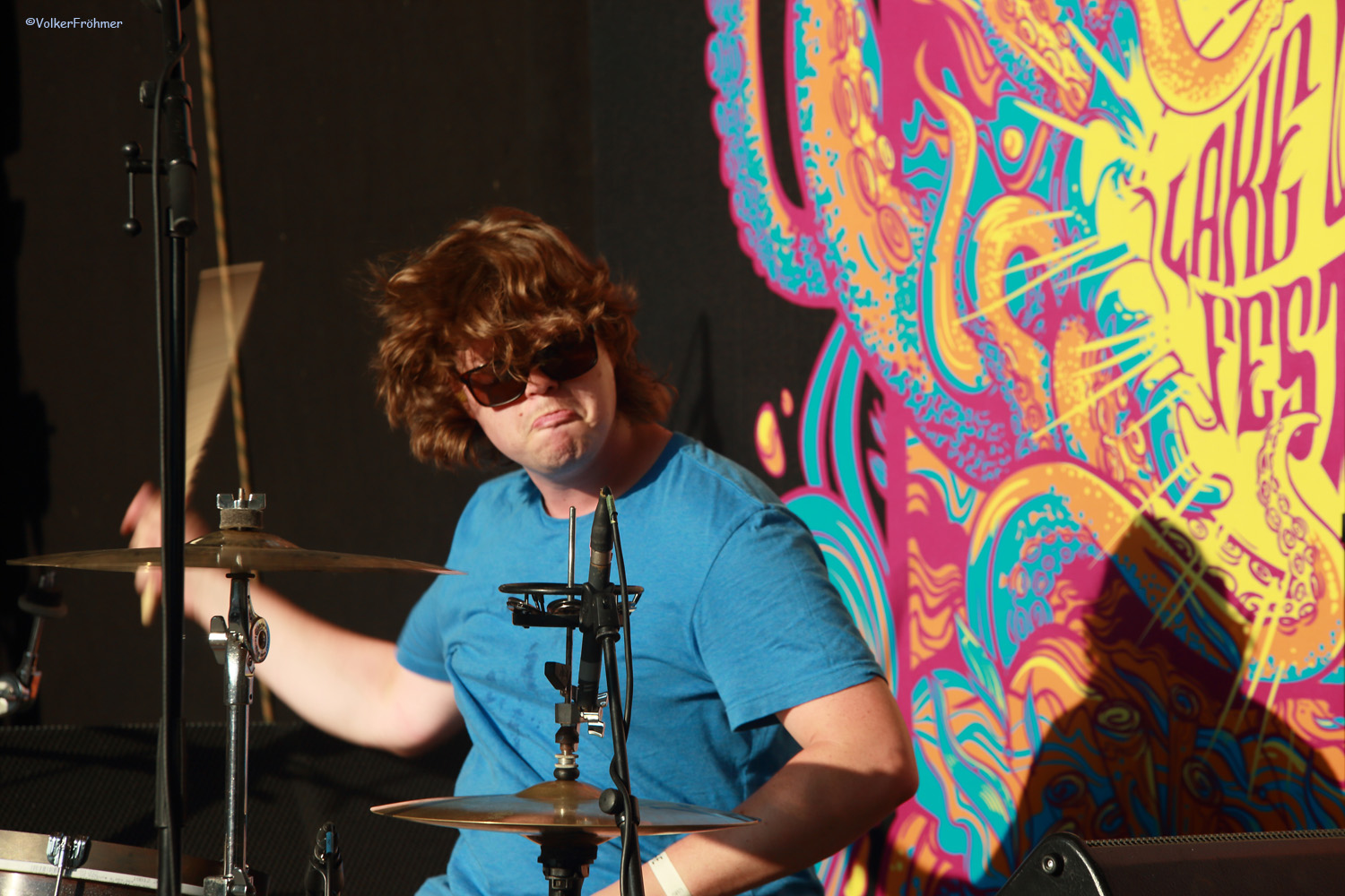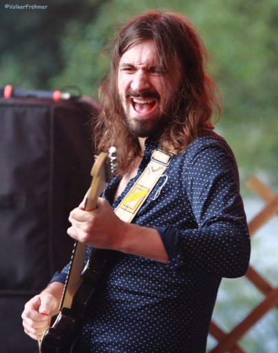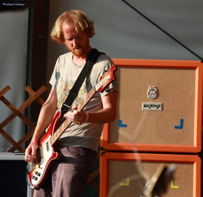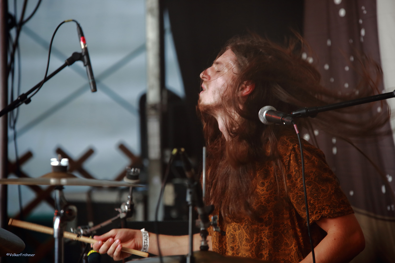 17:10 Uhr, Besuch aus Franken/Deutschland in Oberösterreich, Willow Child möchten uns gerne mit ihrem sehr fein gestrickten Rock überzeugen, unseren Kollegen Jens haben sie eh schon fasziniert, hier nachzulesen. Und mich faszinieren sie nun auch….was für herrliche Musik schallt über Wasser und Wiesen, selbst die Grashalme psychedelisieren mit. Eva, Daniel, Flo, Javier und Jonas lassen einen wunderbaren Song nach dem anderen aus ihrem Album „Paradise & Nadir“ in den beginnenden frühen Abend. Vor der Bühne versammeln sich immer mehr Laker on Feierer um zu geniessen: psychedelisch gesponnenen Rock mit Hinwendungen auch mal zum Heavy Rock, das Brett ihres Repertoires heißt „Beyond The Blue Fields“.
