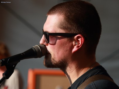 16:00 Uhr, die erste Band betritt die Bühne: KRPL aus Graz, Heavy InstruMental Rock. Heißes Zeug was das Trio da an die heiße Luft lässt. Im Nepomukteich tummeln sich die ersten Festbesucher und geniessen genauso wie die „nur nassgeschwitzten“ den kräftigen Instrumentalsound aus Heavy, Metal, Hardrock und Stoner. Klasseauftakt ist in meinen Ohren ein sehr metallisch angehauchter Track: „Nature Of Force“ von ihrer Debütscheibe. Und locker lassen sie im weiteren Verlauf nicht……..kräftige Wellenritte wabern über den Teich.