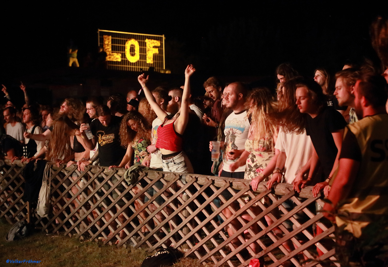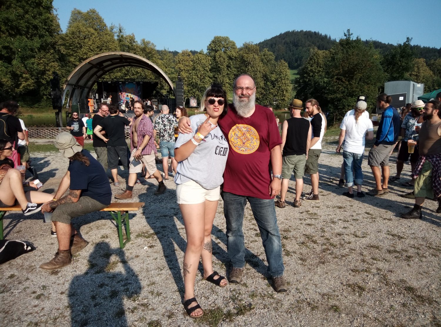 Meine liebe Blogkollegin Pearl ist schon in Action, sie ist beim LOF Teil der freiwilligen Helfer und macht für unseren Blog Interviews mit einigen Bands, wir freuen uns darauf. Auch ihr Ehemann Rafael ist Teil der Helfermannschaft, er ist bei der Kulinarik dabei. Auch sehr schön schon beim ersten Überblick: sehr viele Bekannte aus der Szene, wunderbar. Ja, unsere freakige Musikwelt ist klein, aber sehr sehr fein. Rock Freaks waren sieben an der Zahl vor Ort: Elke, Sonja, Alex, Klaus, Stefan, Volker und WoFo. Und wir hatten ´ne Menge Spaß, oh ja.