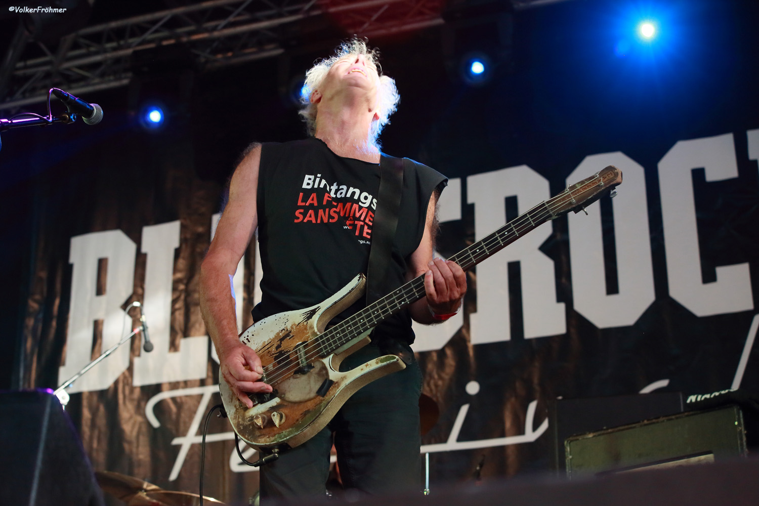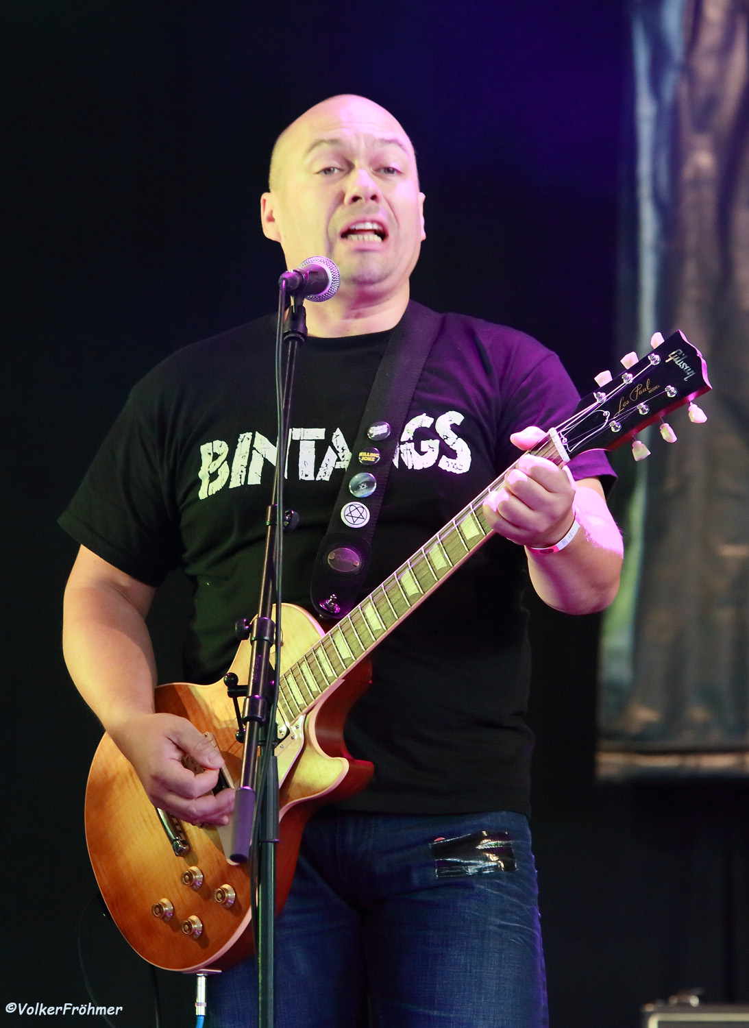 Die folgende Pause überbrücke ich mit einem netten Getränk, dem Hin-und Herschlendern vor dem Merch und dem eifrigen Gedankenaustausch über die langen Jahre, die dieses Festival nun schon stattfindet, wer wann hier und wie oft auf der Bühne stand und über musikalische Sozialisationen im allgemeinen und im speziellen.