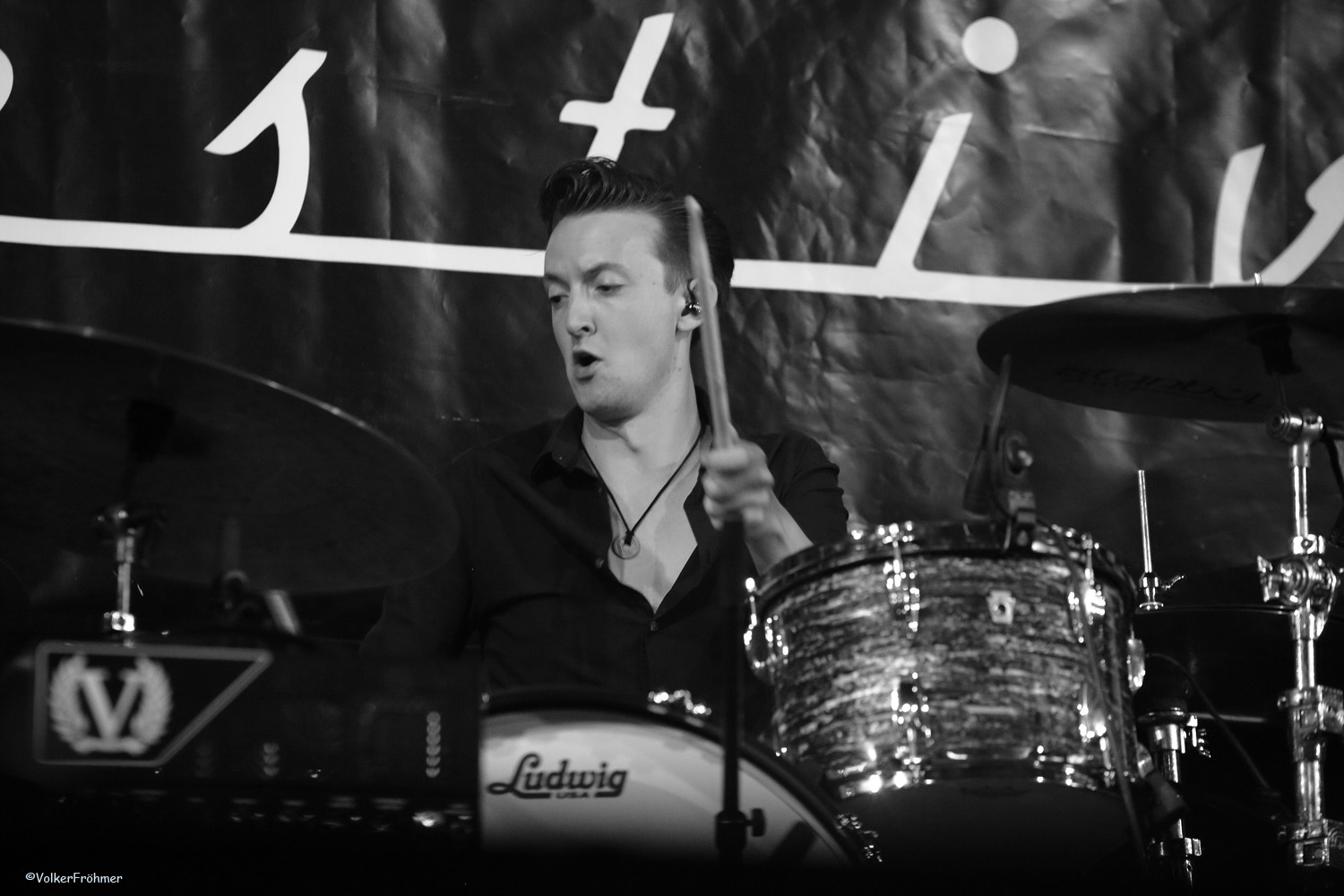 Sie bieten ein stimmiges Gesamtpaket, musikalisch und optisch: vom variablen Gesang des Fronters, der blinkenden alten Telecaster und dem Retro Style der Outfits. Flotter Glencheck-Anzug, weißes Hemd und dazu eine akkurate Fliege, Hosenträger und grün-rote Budapester, natürlich perfekt geputzt, ja, das macht schon Eindruck.