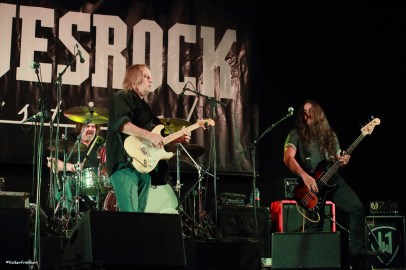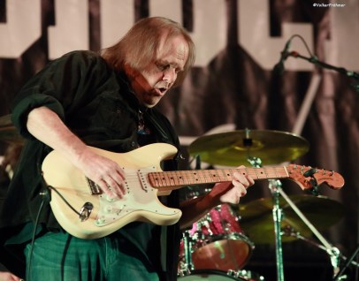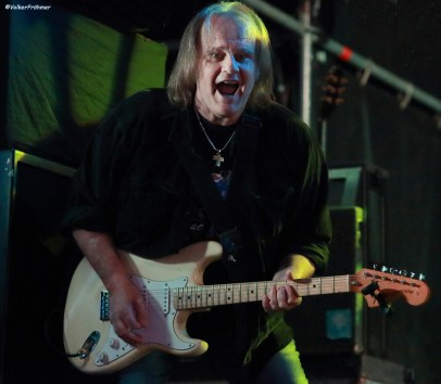 „Walter Trout und Band„: nach einer sehr schweren Krankheit in hervorragender Weise wieder fit und agil und mit vollstem Einsatz mit Körper und Mimik drosch Walter mit seiner großartigen Band durchs Programm. Begeistert wurde jeder Ton, jede Silbe von ihm wirklich und wahrhaftig enthusiastisch gefeiert, aber es war auch ein Brett, was die vier da auf der Bühne ablieferten. Und mit „I can tell“ als erstem Song kannste aber auch gar nix falsch machen. Ich versuchte inmitten der völlig abgehenden und pure Freude ausstrahlenden Menge mit leicht angewinkelten Armen ein paar Photos zu machen….