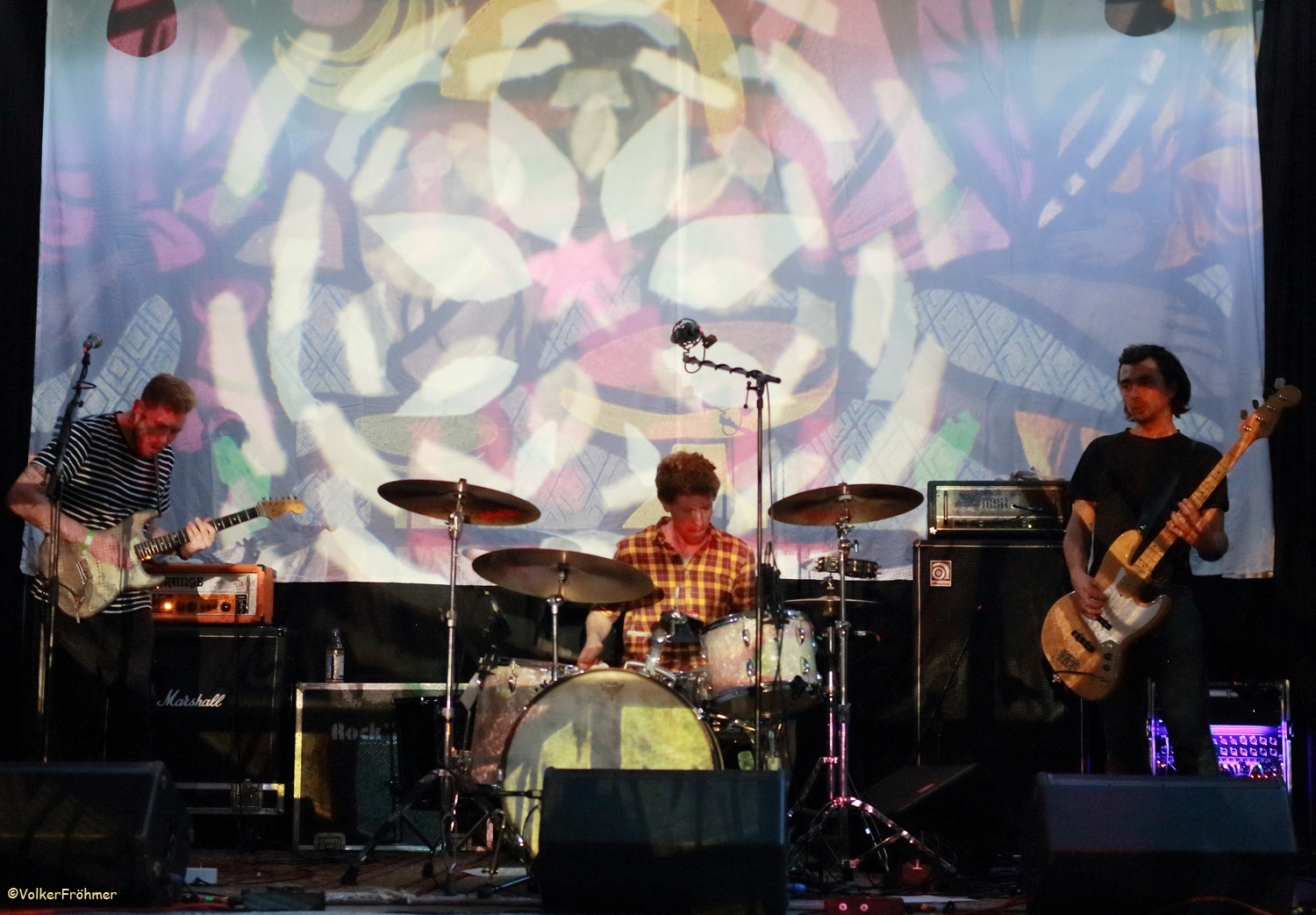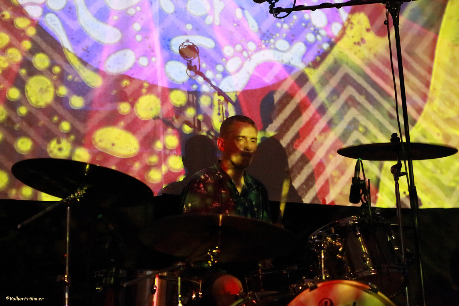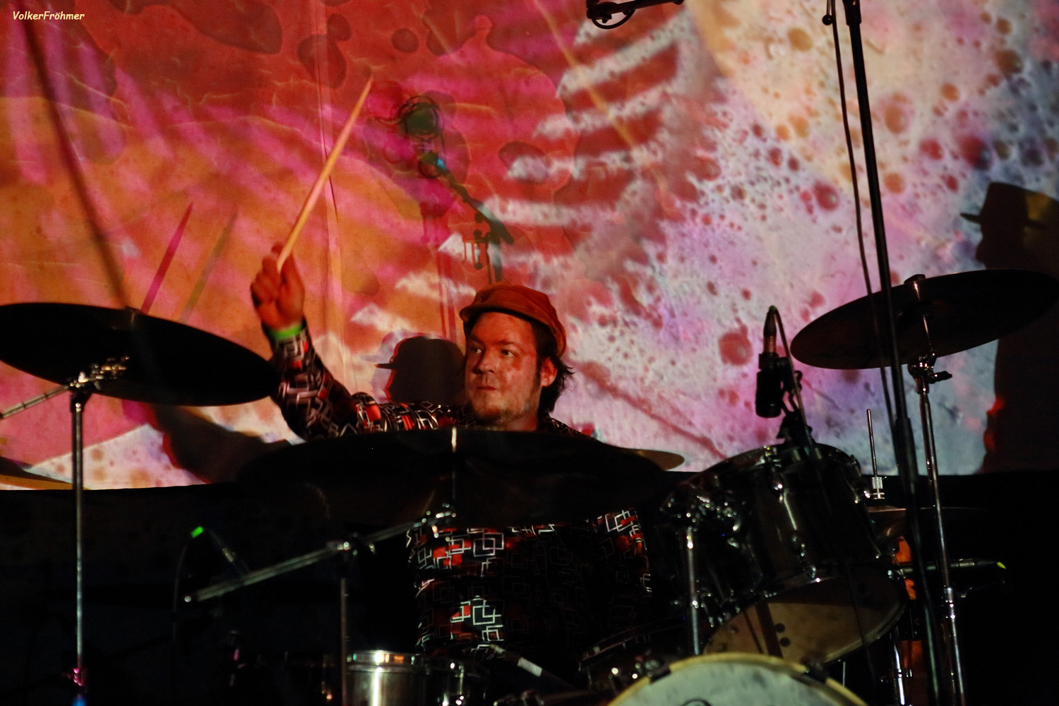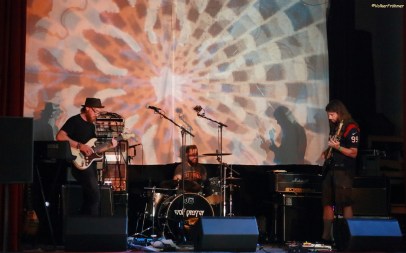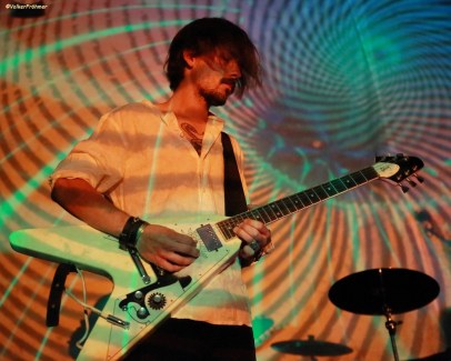 Leider war der Zeitplan zu dieser Zeit schon gehörig hintendran so daß Vibravoid nach einem doch sehr ausufernden Hin und Her erst um 23:15 Uhr statt um 21:45 Uhr ihre Psychedelic Show anzählten….aber die Show war gespickt mit allem was der Fan von dieser Band erwartet und erhält: Ausflüge in die 60ies: mit geblümter Oberhemden Musik im Style z.B. der frühen Pink Floyd und Can, die auch mächtigen Einfluß ausüben. Schrillbunte, angenehm laufende Psychedelic, diesmal Tastenlos, aber war für mich trotzdem ein Erlebnis.