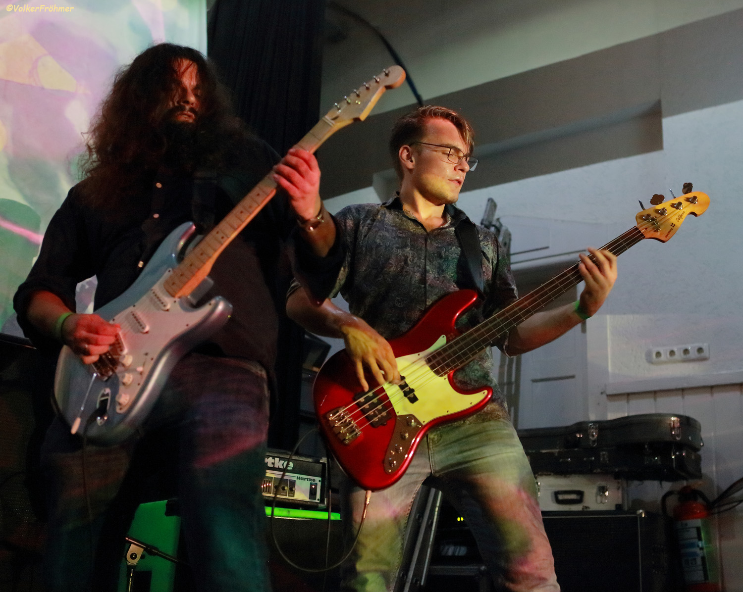 Da sich die Umbaupausen generell etwas zogen fingen alle Bands des noch heutigen Abends später als geplant an, so auch Les Lekin, die aus aus der Mozartstadt Salzburg anreisten und die mich, aber beleibe nicht nur mich, mal wieder völlig aus den Schuhen spielten. Ihre beiden Platten sind schon knallig, aber live wird das locker gedoppelt! Was für Bretter da von der Bühne schallten, Bretter die für uns die Welt bedeuten. Kerstin unterstützt meist lächelnd (herrlich) mit deftigem und feinem Punch die Gitarrenausflüge von Peter, dazu der Viersaitengroove von Marian: die drei erschließen uns eine fast perfekte Psychedelic Stoner Welt, GROSSARTIG! Und im November beim Dome-Of-Rock in Salzburg gibt´s ein Wiederhören….Draußen vor Walhalla ergaben sich generell in den Umbaupausen wunderbare Gespräche mit lebenden alten, sehr alten und neuen Bekannten aus der Szene, herrlich.